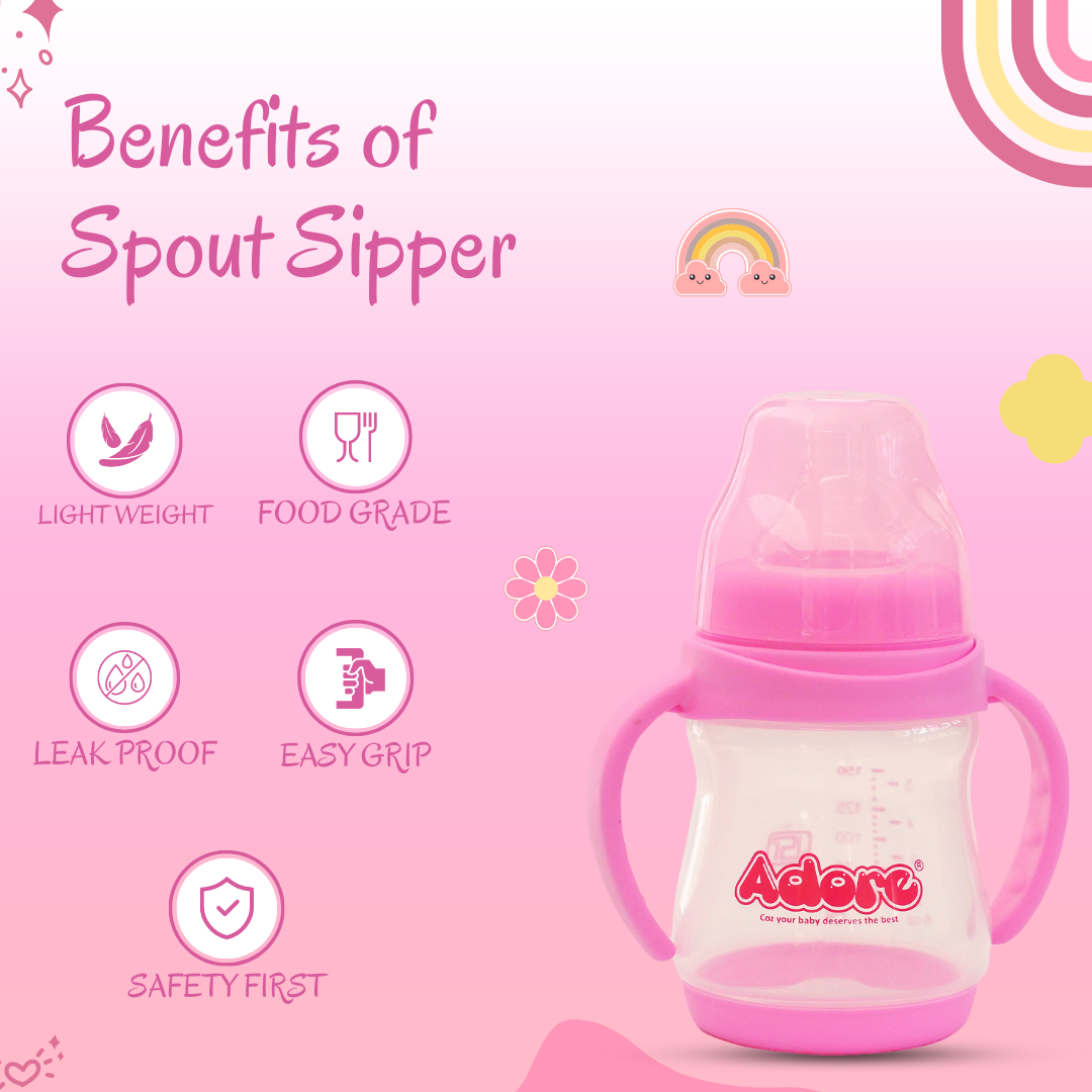 Adore Baby Basics Soft Silicone Spout Sipper with Twin Handle - 150ml Pink