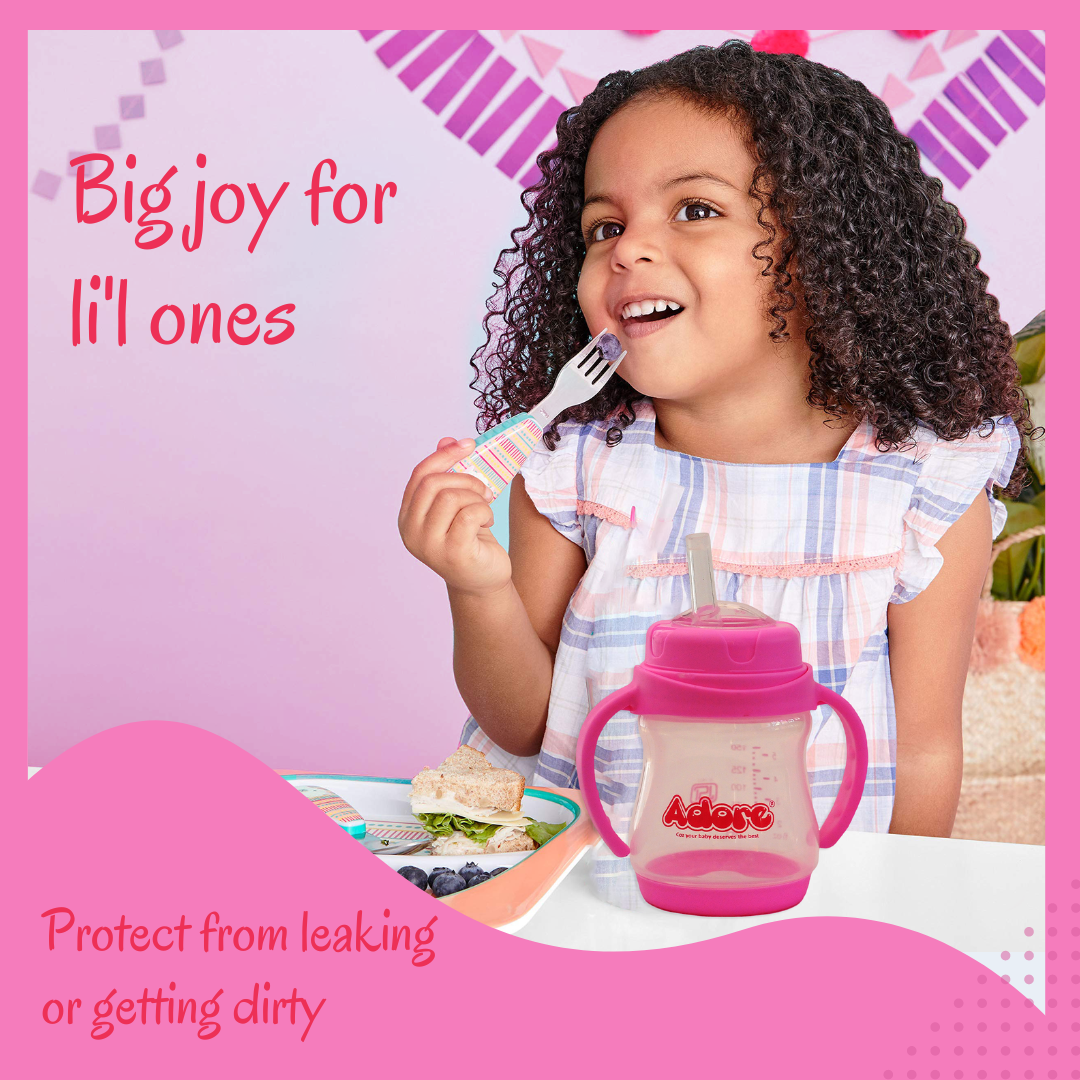Adore Baby Basics Wiggle Straw Sipper with Twin Handle & Dust Free Hood 150ml Pink