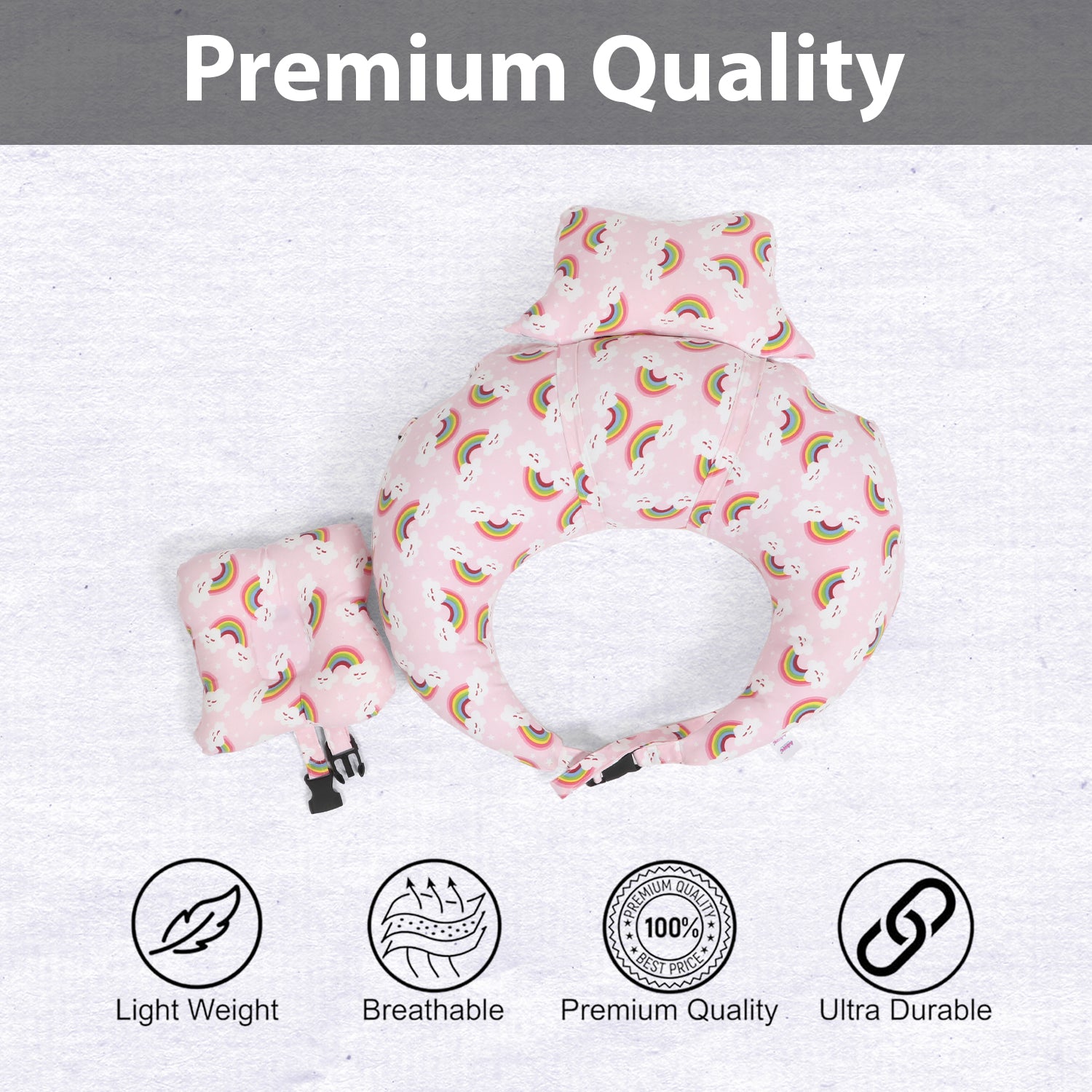 Adore Presents the all-new Feedero- The Multipurpose Feeding Pillow Processed from Premium Grade Recron fibre that is Soft, Gentle, Non-Toxic, Breathable, and completely safe. This feeding pillow can be used for feeding, propping, tummy time, and sitting. This is also supported by a neck pillow and a fence guard that makes sure the baby sits perfectly during feeding time.