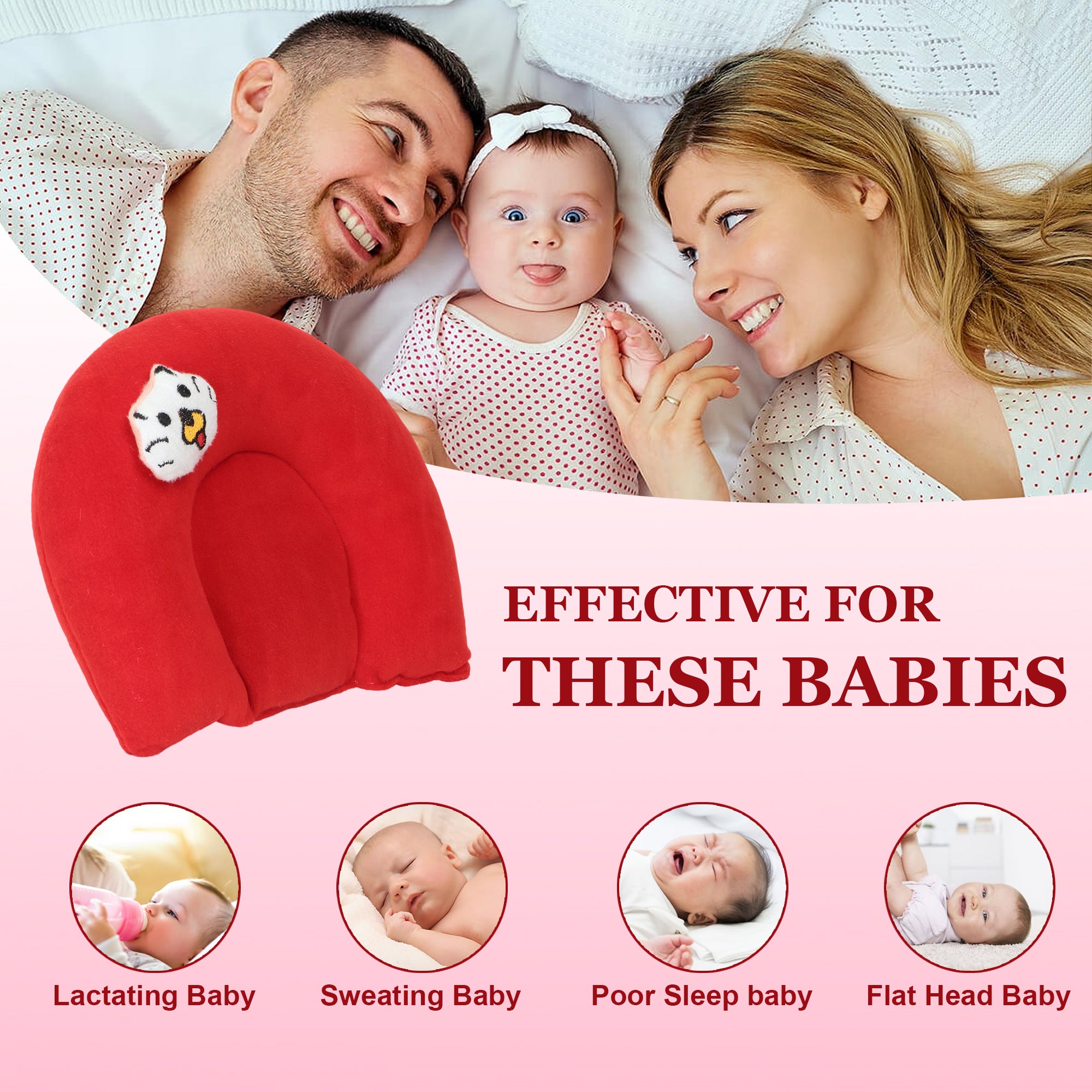 Regulates body temperature: The natural materials in the pillow help keep the baby cool and comfortable.