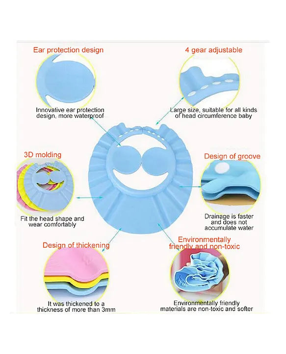 Adore Merry Go Round shampoo hat for babies. This shampoo hat fits perfectly on the baby's head and makes an airtight seal around the head so that water does not flow on the face. It protects eyes from shampoo and water and also let baby breathe normally while water flows down their heads. Made of soft material, this hat is perfectly safe for a baby's skin. You may use it during showers, normal daily bathing, as a sun protector, or during outings.