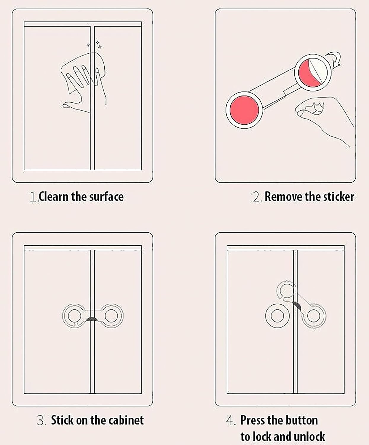 • Can be used on toilet seats, cabinets, closets and other suitable objects