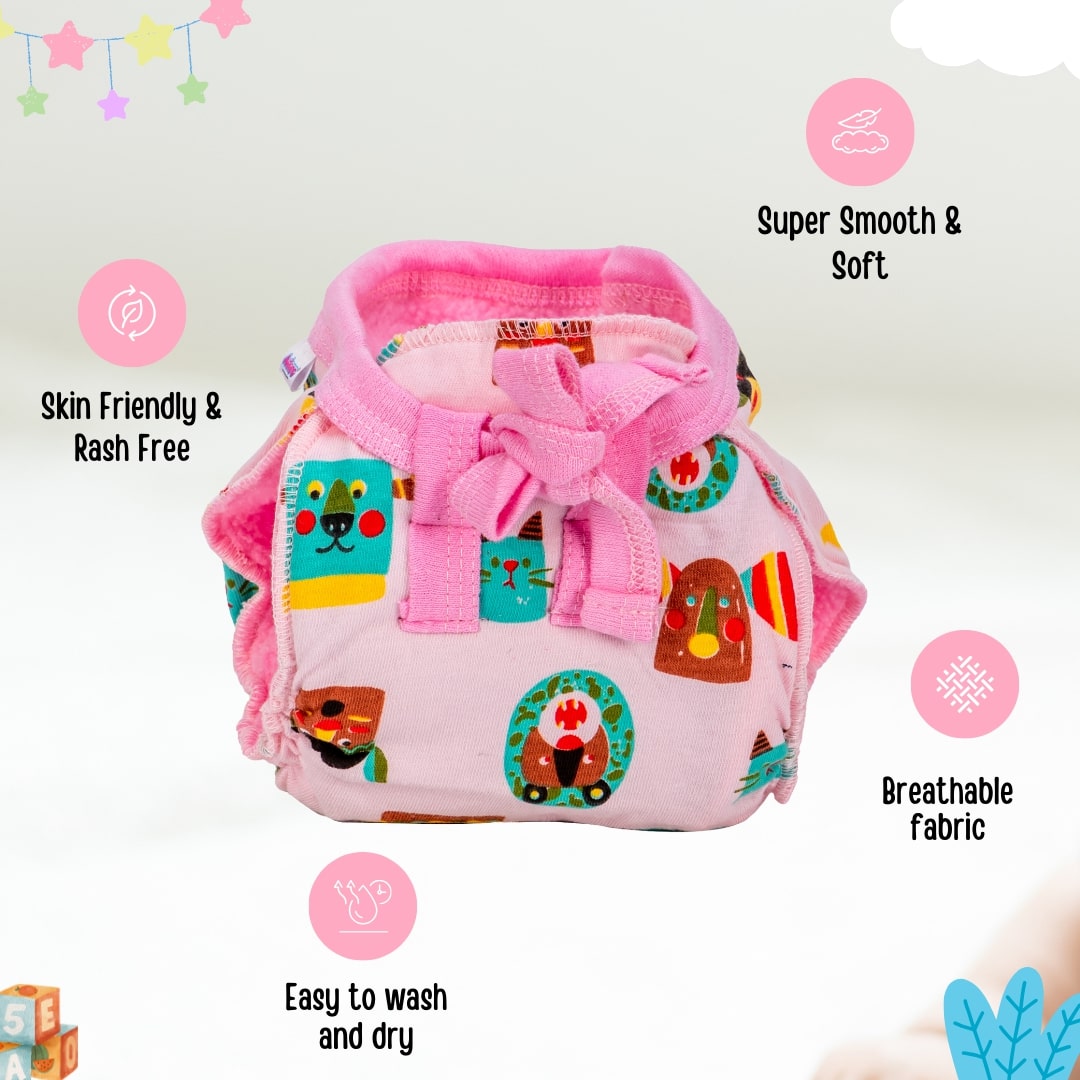 Adore Insta Dry Baby Cloth Tie Knot Langot- 4-8 Months Pink Animal M