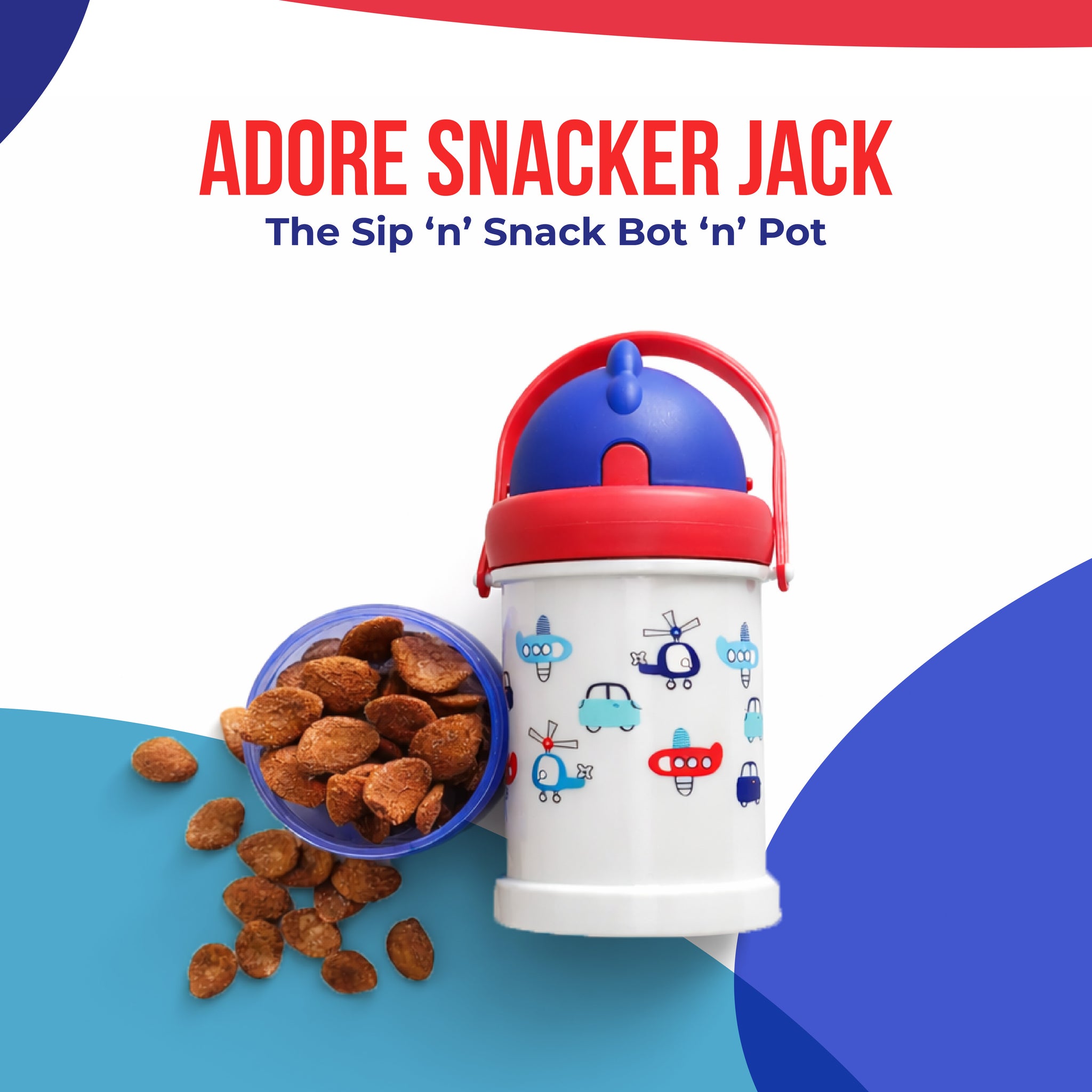 Adore Snacker Jack -The Sip 'n' Snack Bot 'n' Pot with Handle- Blue