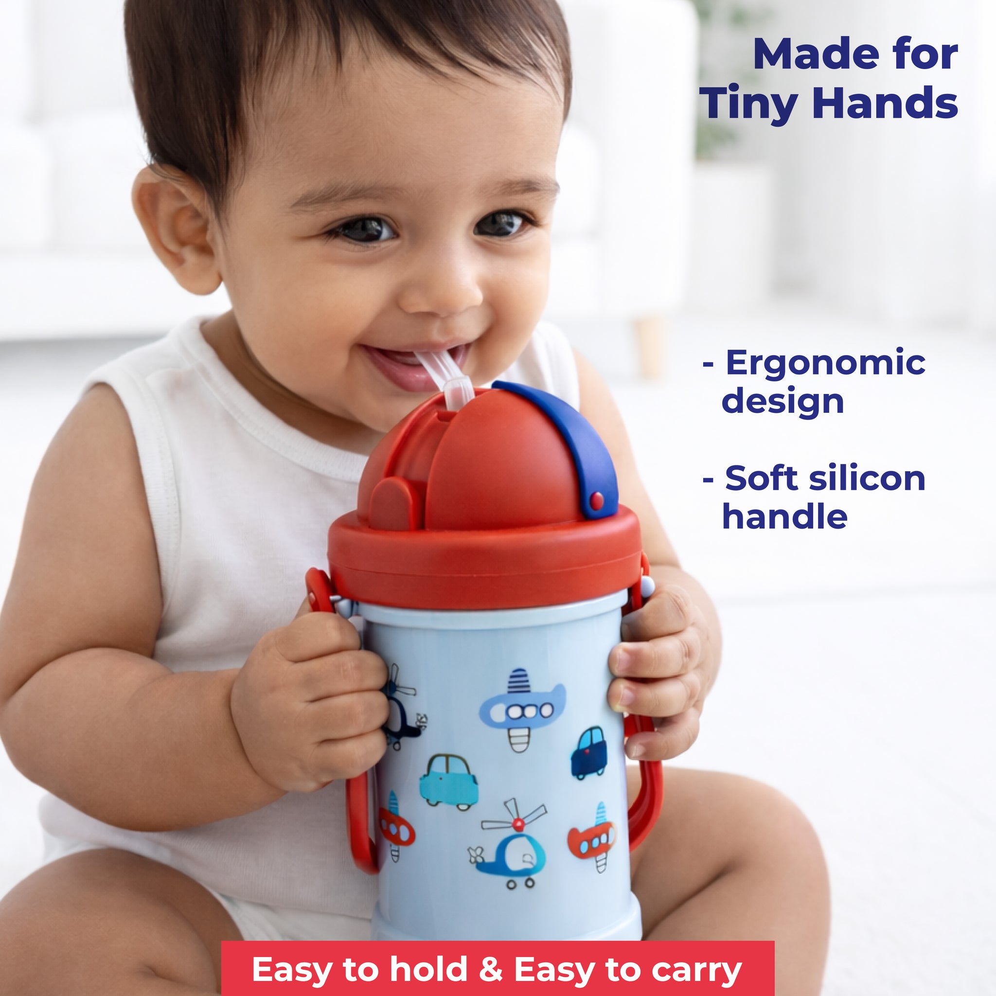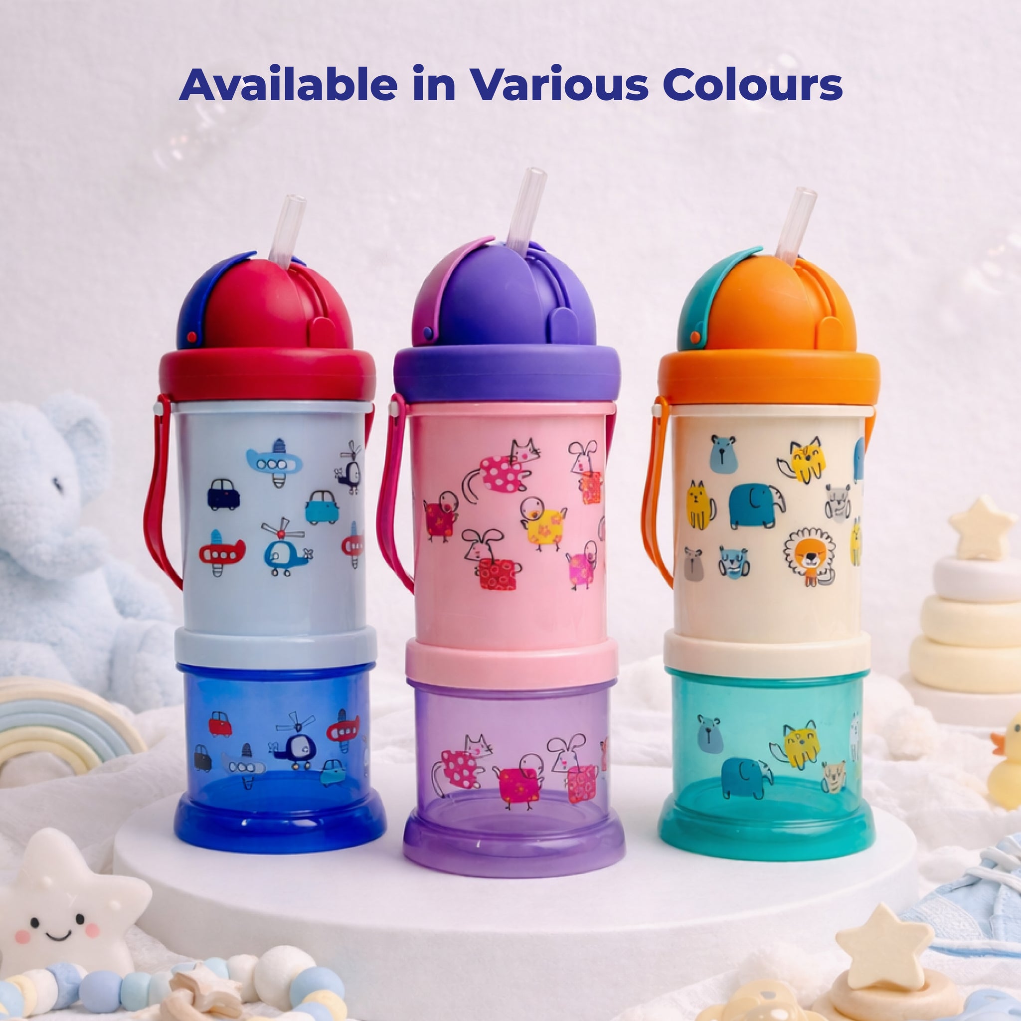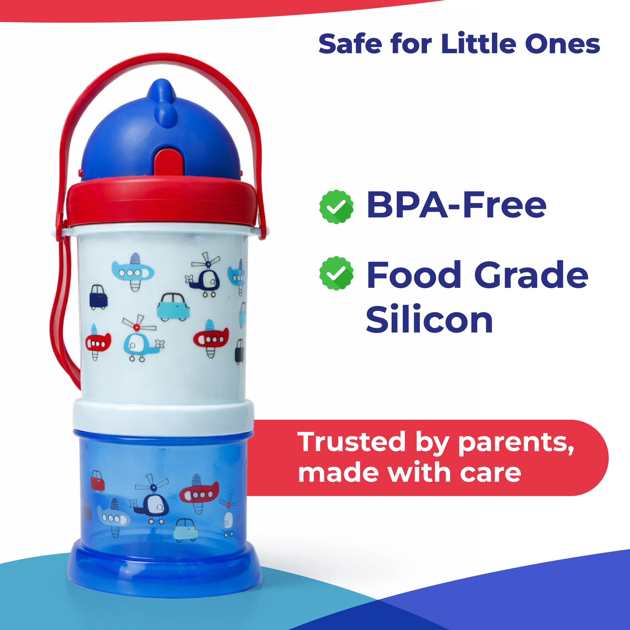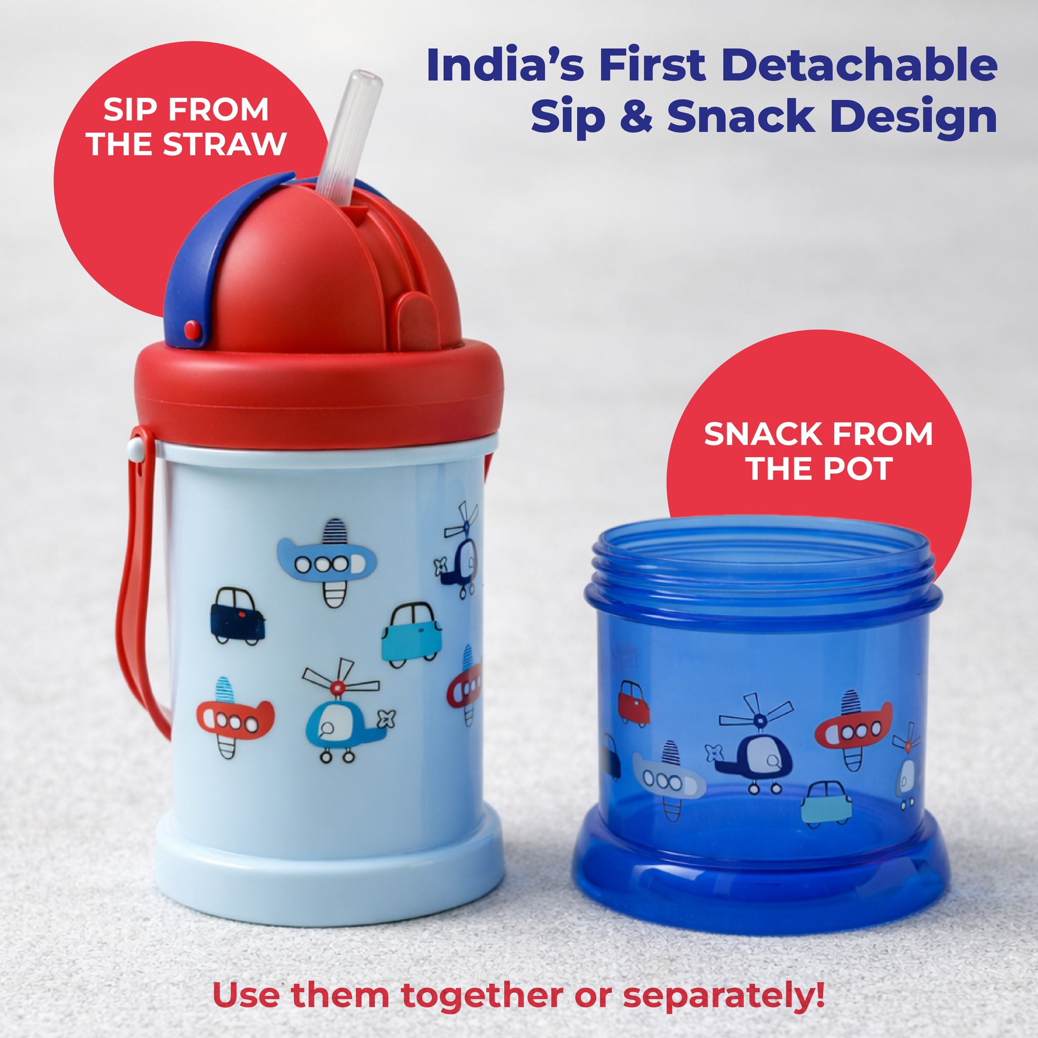 Adore Snacker Jack Sip n Snack pot Straw Sipper is processed from food-grade material using state-of-the-art machinery. This is India's first-ever sipper that comes with absolutely detachable snack storage. This is also complimented with a silicon handle that makes it a must for kids. This has best in best-in-class capacity of 210ml and a snack pot that can be used for all types of snacks, purees, and puffs