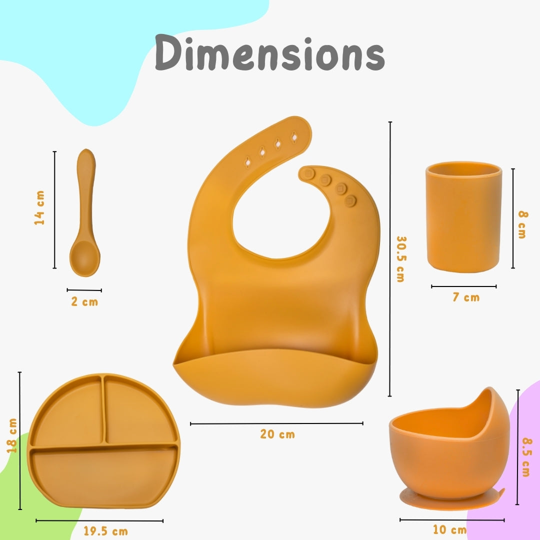 Adore Brillio Silicon Baby Feeding Set- Pack of 5 - Yellow