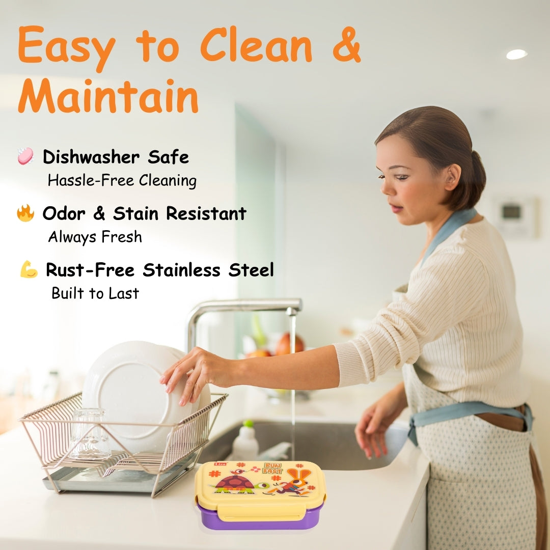 Introducing the Adore Good Food! The Stainless Steel Lunch Box for Kids, featuring a captivating array of designs. Crafted for both style and practicality, Adore collection transforms lunchtime into a delightful adventure, sparking curiosity with every meal. This set contains an air-tight spill proof lunch box, an inner box and a stainless steel spoon. These boxes are BPA Free, Non-Toxic, Safe for Kids, Spill Proof, Ergonomic in design and Dishwasher safe. Now available in attractive designs.