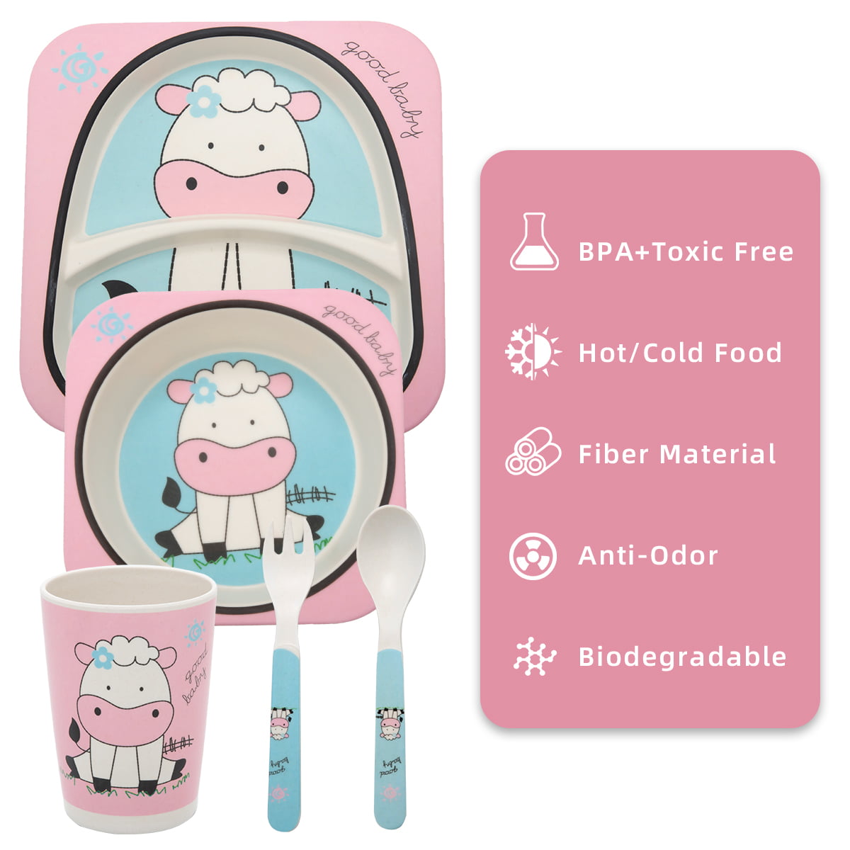 Adore Hey Ya! Bamboo Meal Sets - Pack of 5 accessories- Cow
