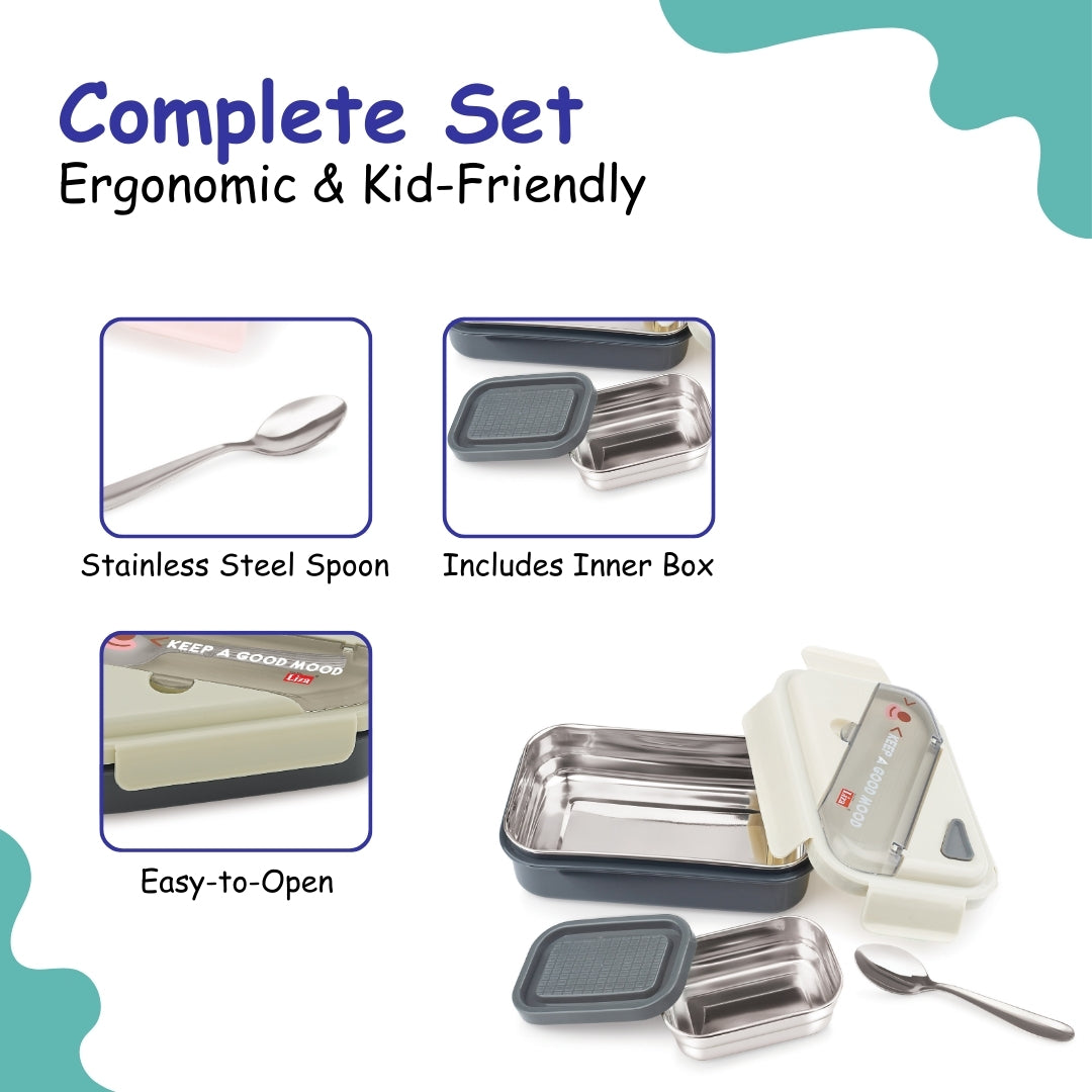 Introducing the Adore Kids Meal! The Stainless Steel Lunch Box for Kids, featuring a captivating array of designs. Crafted for both style and practicality, Adore collection transforms lunchtime into a delightful adventure, sparking curiosity with every meal. This set contains an air-tight spill proof lunch box, an inner box and a stainless steel spoon. These boxes are BPA Free, Non-Toxic, Safe for Kids, Spill Proof, Ergonomic in design and Dishwasher safe. Now available in attractive designs.