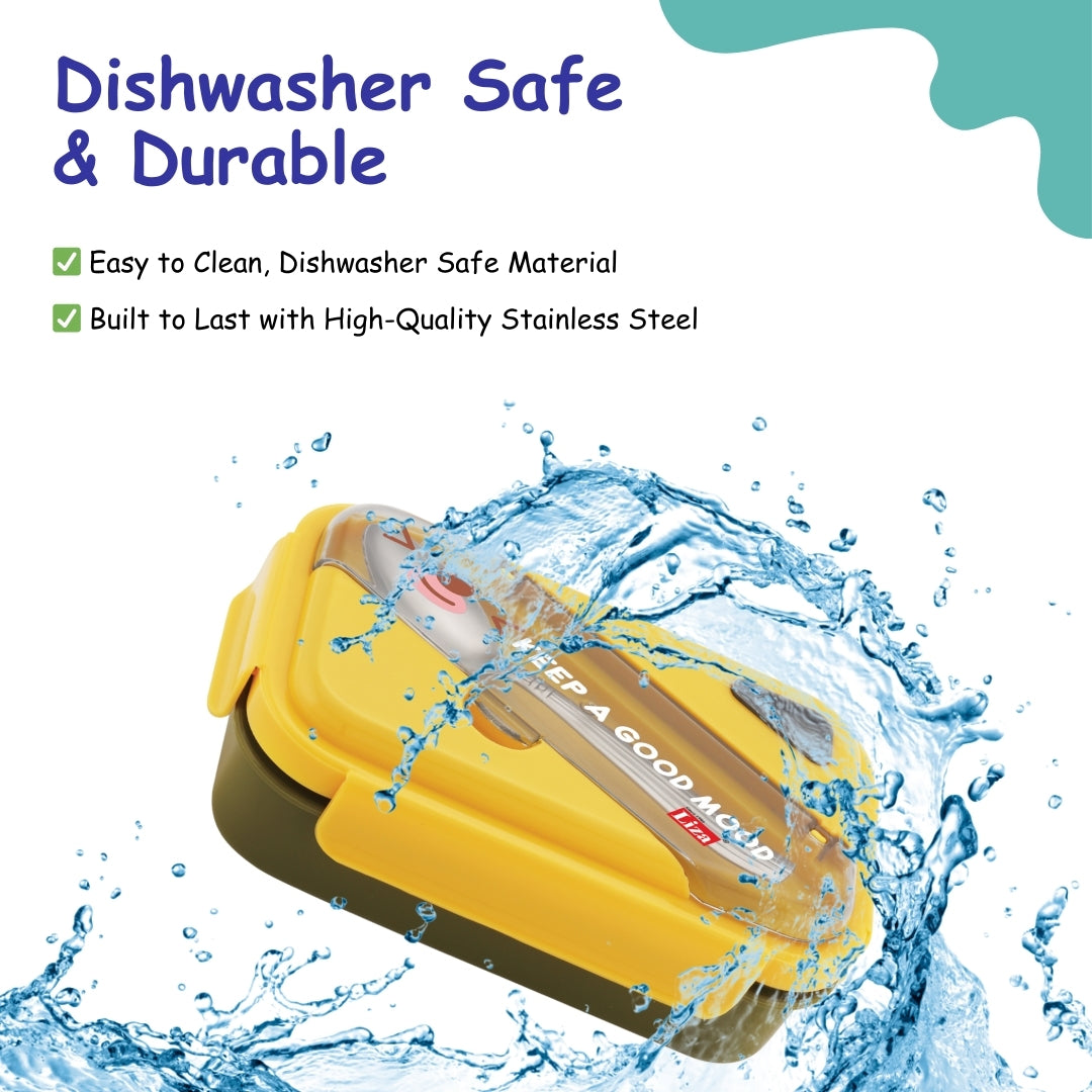 Adore Kids Meal! The Stainless Steel Lunch Box with Inner Box and Steel Spoon - Yellow