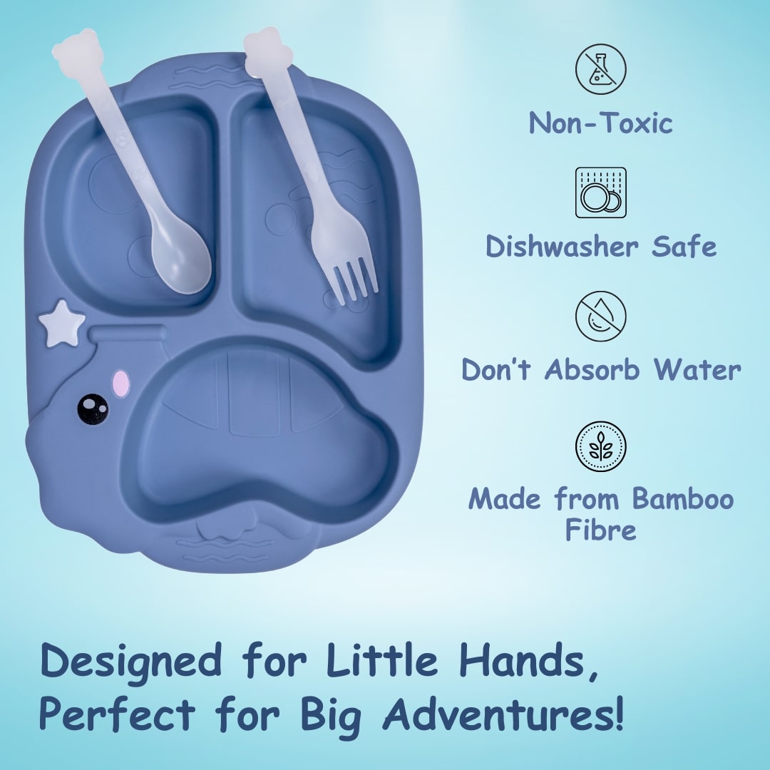 Adore Sea Horse Baby Tableware set is made from world-class technology using the state of the art machinery. This feeding plate is processed from food-grade bamboo fibre that is safe, non-toxic, and ergonomic in design. This has been designed with the help of a section that helps in having a mess-free feeding time for kids, this also has a spoon and a fork. The attractive design and colors engage the children to enjoy their meal time.