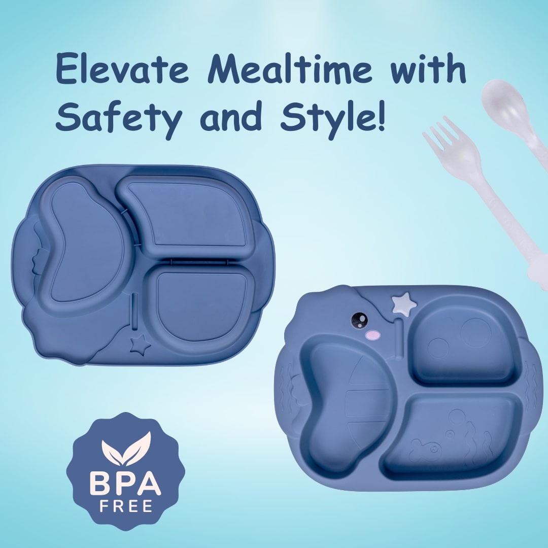 Adore Sea Horse - Plastic feeding plate with Spoon & Fork- Blue