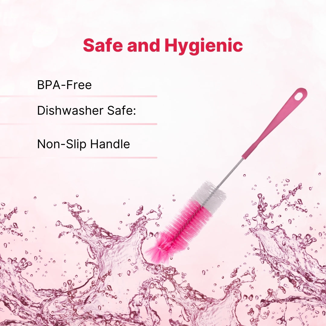 360° Movable Bristles: Adore Duece Long Handled bottle cleaner is made of Highly flexible Non-Toxic Silicone bristles that reach all corners of bottles & accessories ensuring scratch-free safe cleaning.Ergonomically designed Handle: Easy Grip 360° rotating brush handle removes stains and harmful bacteria from feeding accessories, baby bottles, bowls, dishes, and sippers.Time-Saving Solution: Perfect for busy parents, this bottle brush cleaner streamlines the cleaning process, saving valuable time and effort in your daily routine.Versatile Cleaning: Suitable for both narrow and wide-neck bottles, offering convenience for various types of baby feeding equipment.