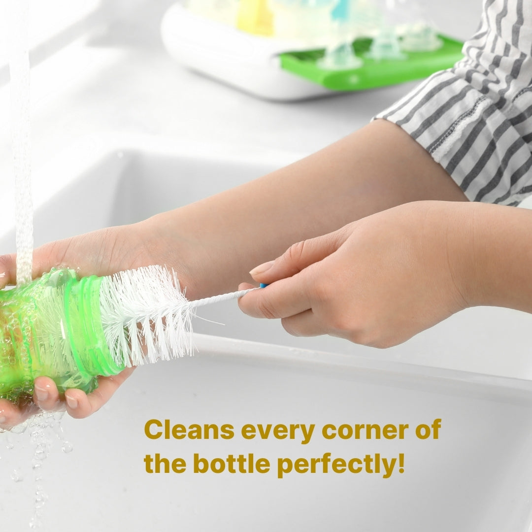 360° Movable Bristles: Adore Duece Long Handled bottle cleaner is made of Highly flexible Non-Toxic Silicone bristles that reach all corners of bottles & accessories ensuring scratch-free safe cleaning.Ergonomically designed Handle: Easy Grip 360° rotating brush handle removes stains and harmful bacteria from feeding accessories, baby bottles, bowls, dishes, and sippers.Time-Saving Solution: Perfect for busy parents, this bottle brush cleaner streamlines the cleaning process, saving valuable time and effort in your daily routine.Versatile Cleaning: Suitable for both narrow and wide-neck bottles, offering convenience for various types of baby feeding equipment.