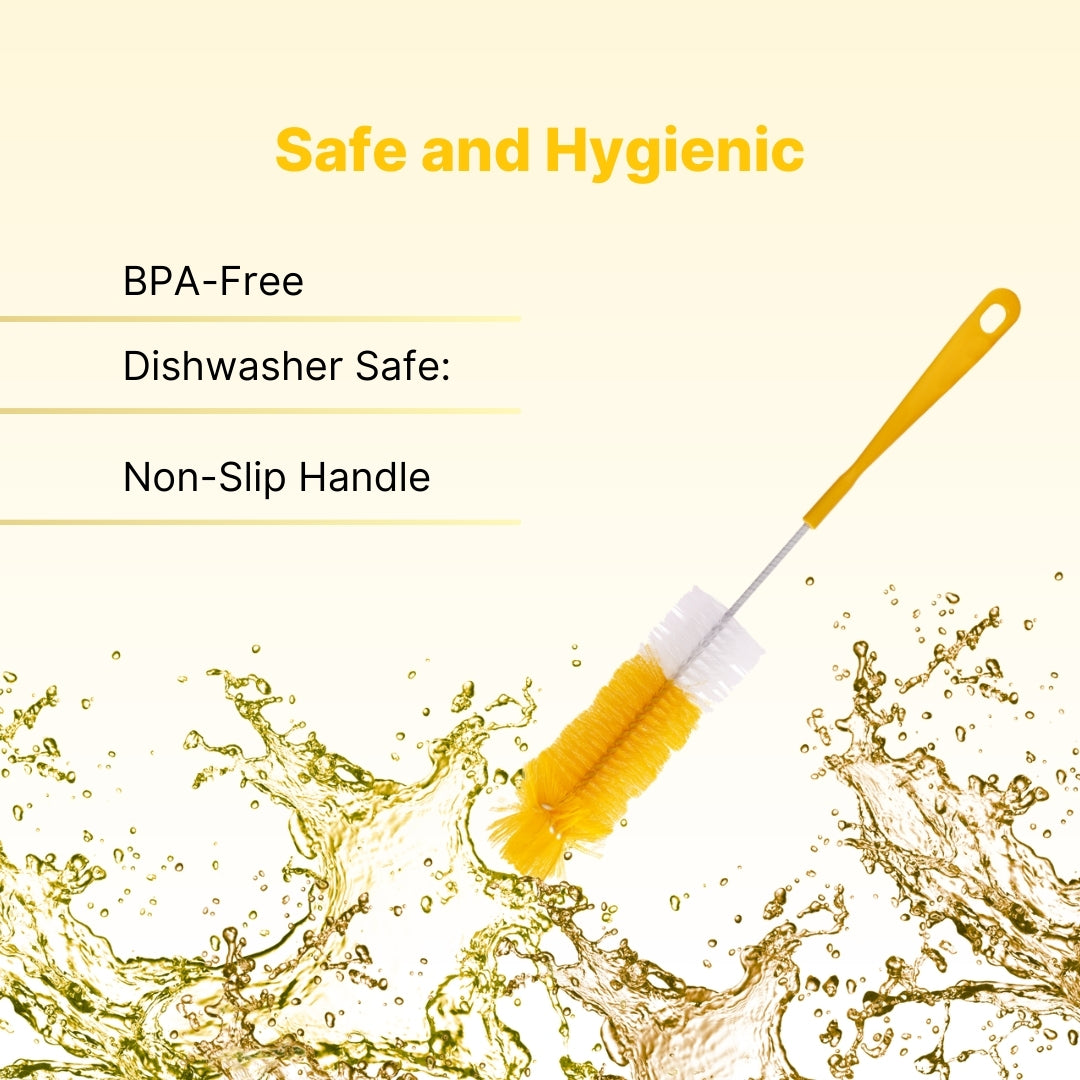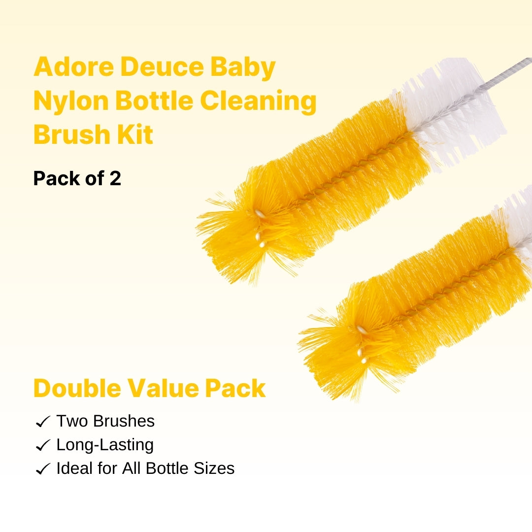 Adore Duece Long Handled Nylon Baby Bottle Cleaning Brush Kit Pack of 2 - Yellow
