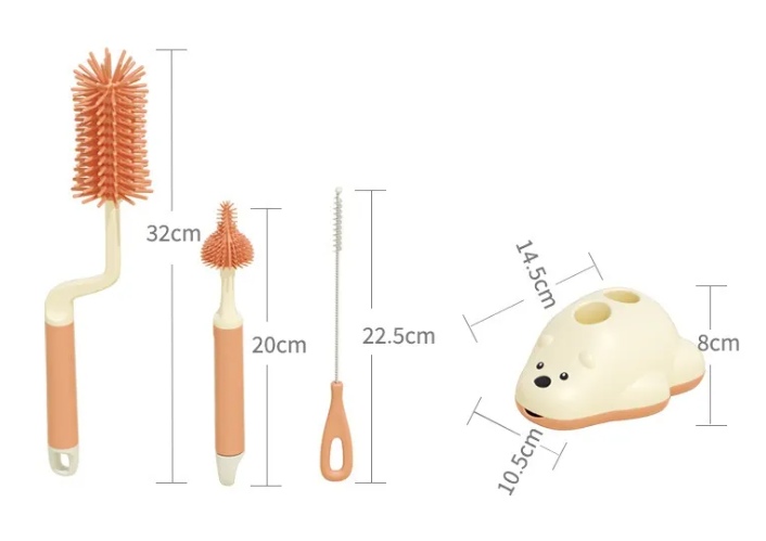 Adore Polar Bear 3 in 1 Silicone Scratch Free Bottle, Teat, and Straw Cleaning Brush Kit with Drying rack is suitable for all types of feeding bottles and their accessories and makes it easy to clean and maintain the bottle from the remnants. Keeps them clean and hygienic.
