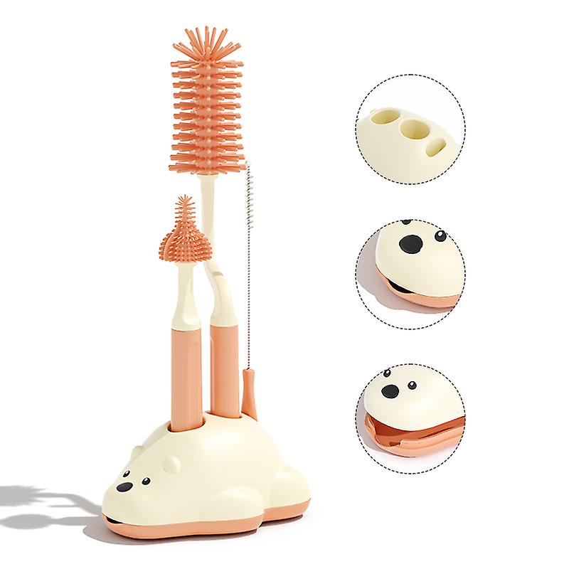 Adore Polar Bear 3 in 1 Bottle Cleaning Brush kit with Drying Stand - Pink