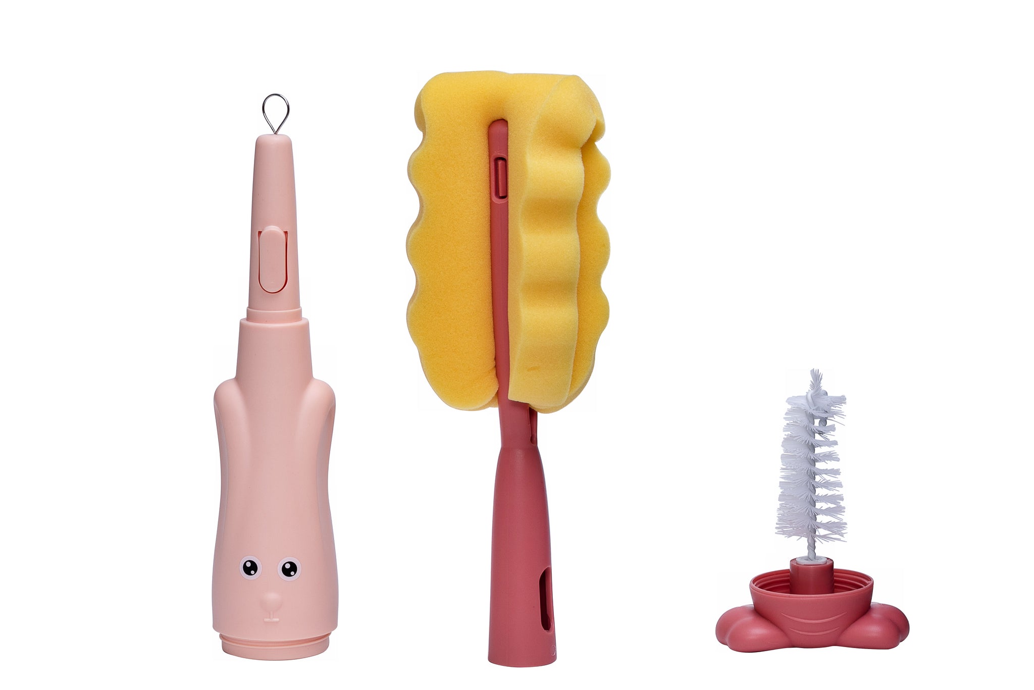 Adore Spongy Rabbit 3-in-1 Bottle Cleaning Brush Kit - Pink