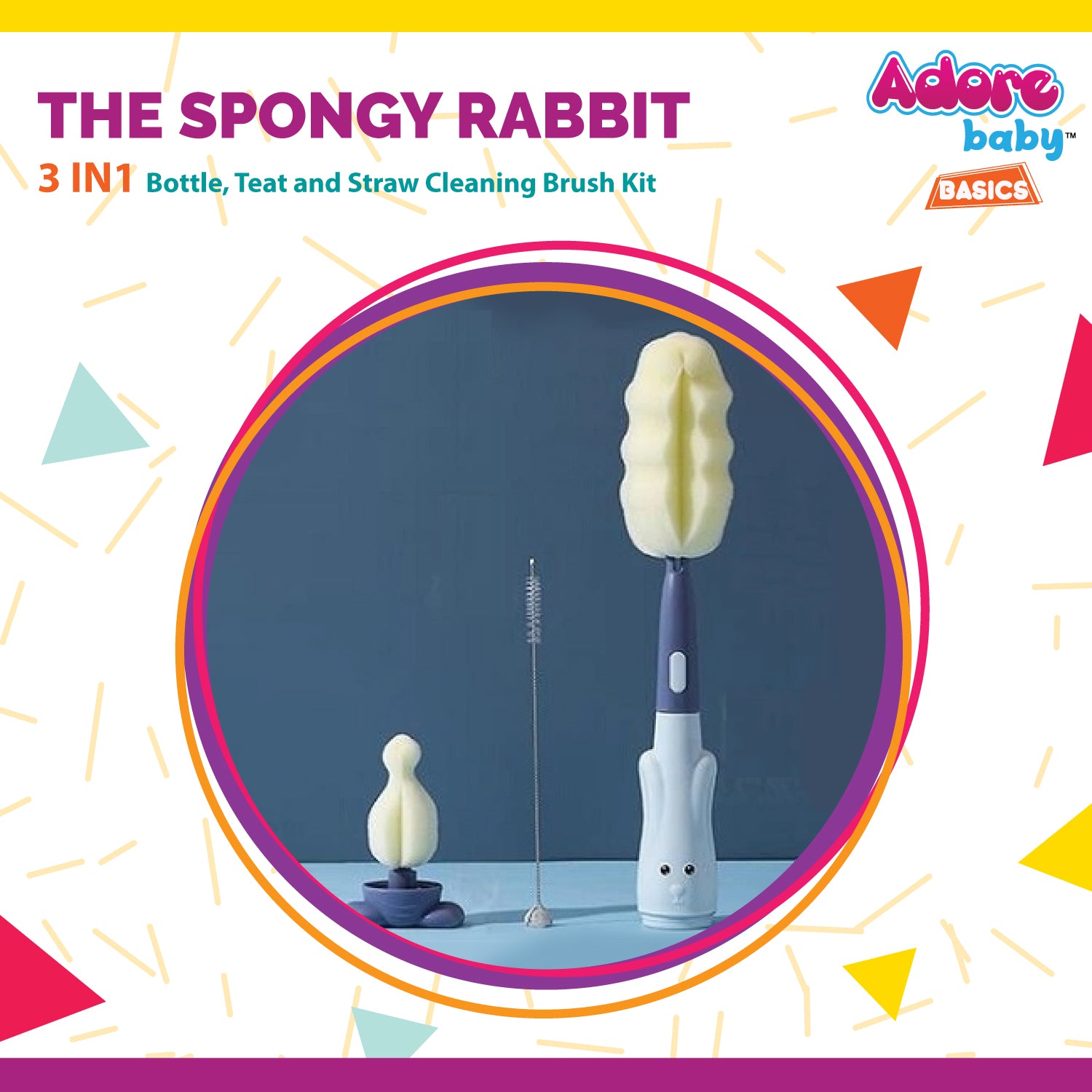Adore Spongy Rabbit 3-in-1 Bottle Cleaning Brush Kit -Blue