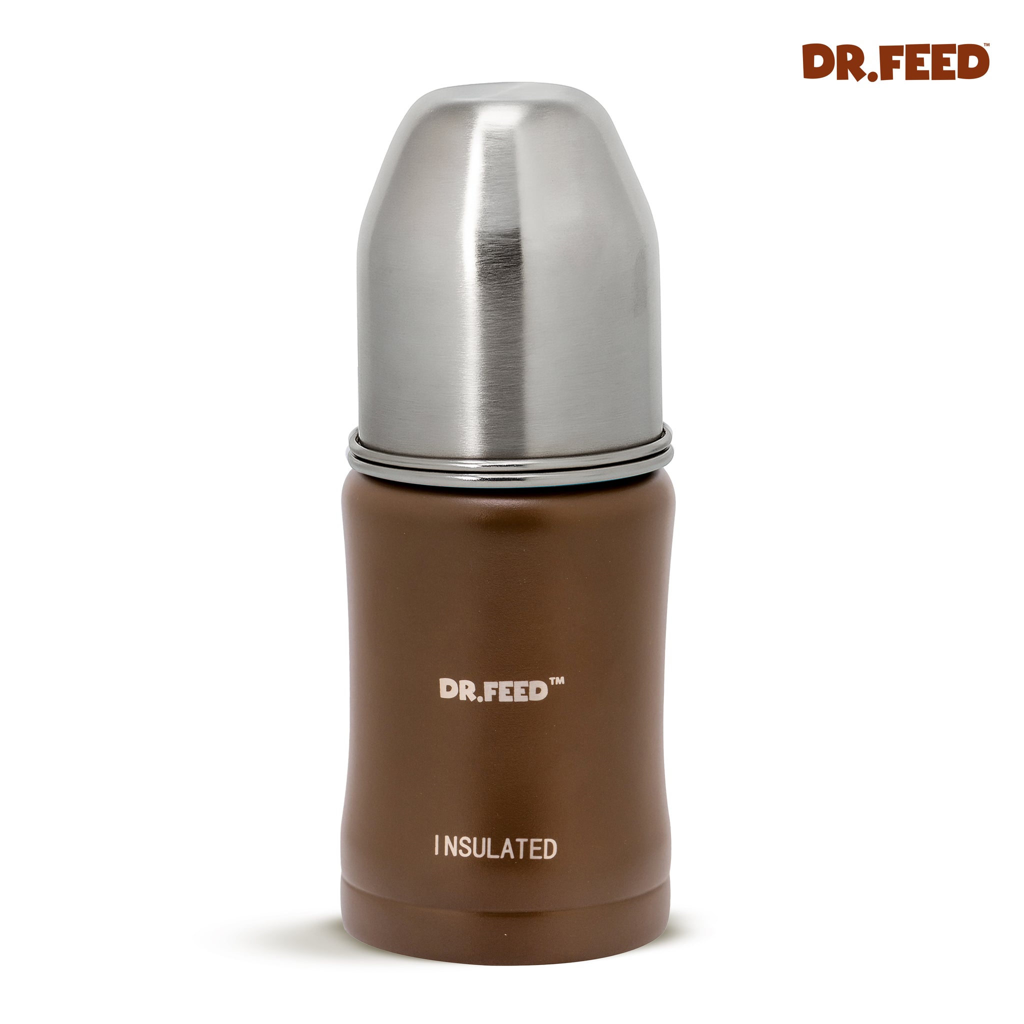 Adore Dr.Feed Majestique Insulated Thermos Hot/ Cold Stainless Steel Feeding Bottle with Anti-Colic Teat- D3- 180ml- Earthen Brown
