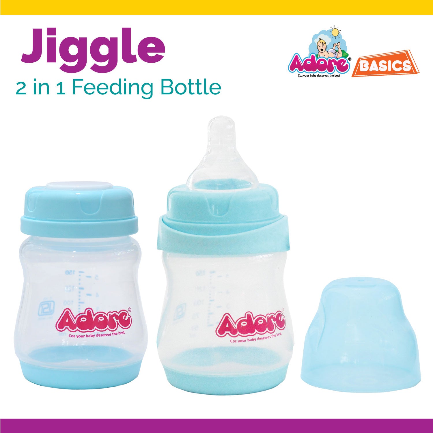 Adore Jiggle 2 in 1 Feeding Bottle 150ml - Blue