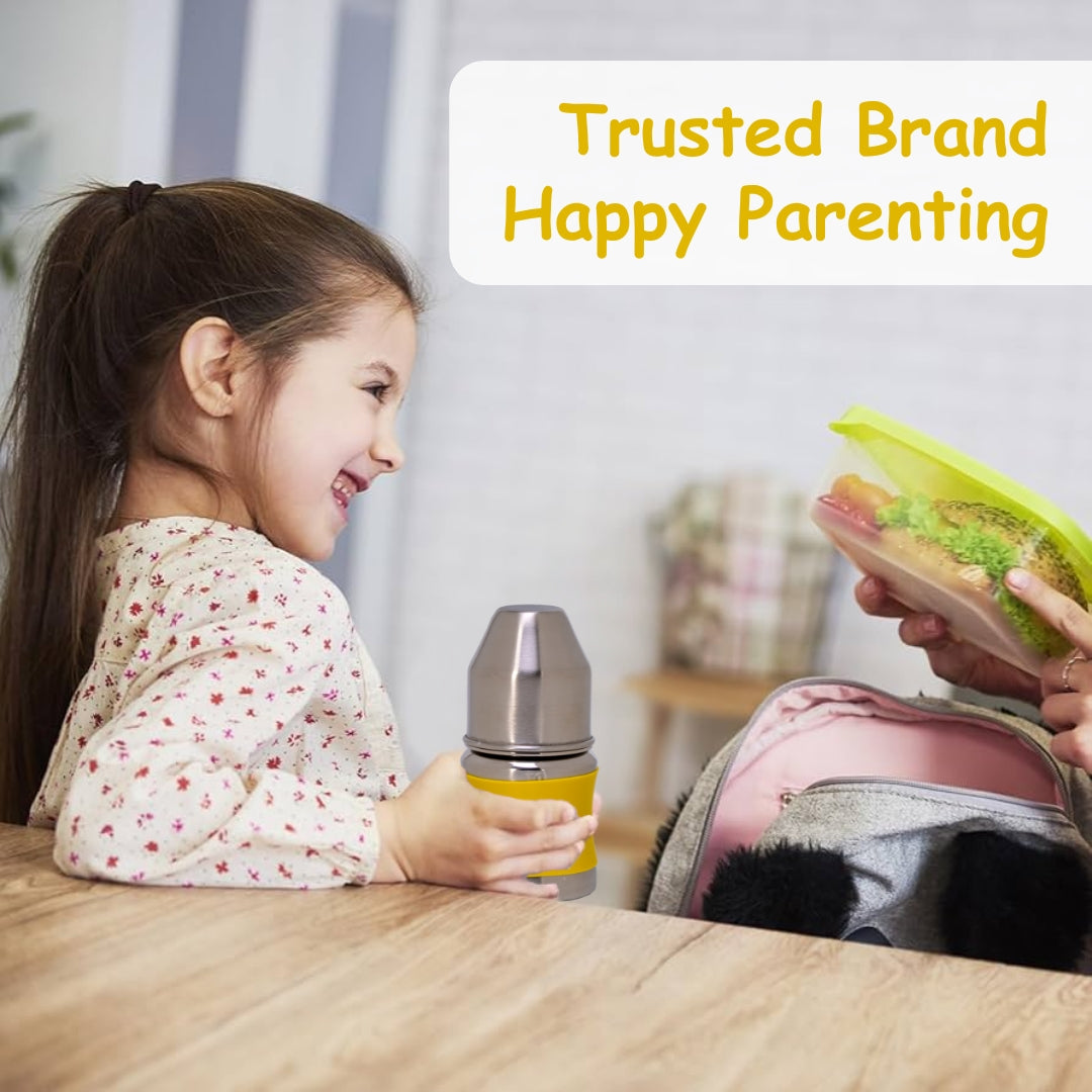 Adore Koh Stainless Steel Wide Neck Feeding Bottle with Silicon Sleeve - 150ml Yellow