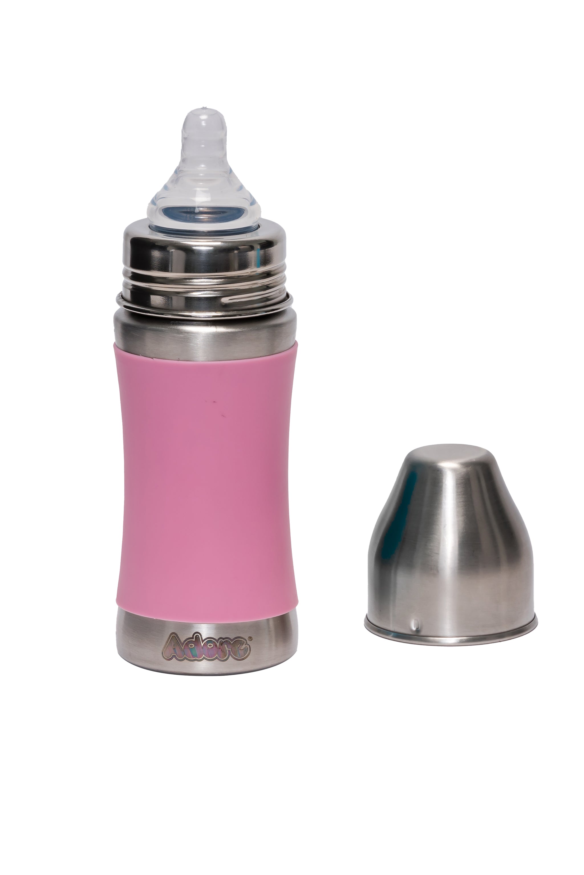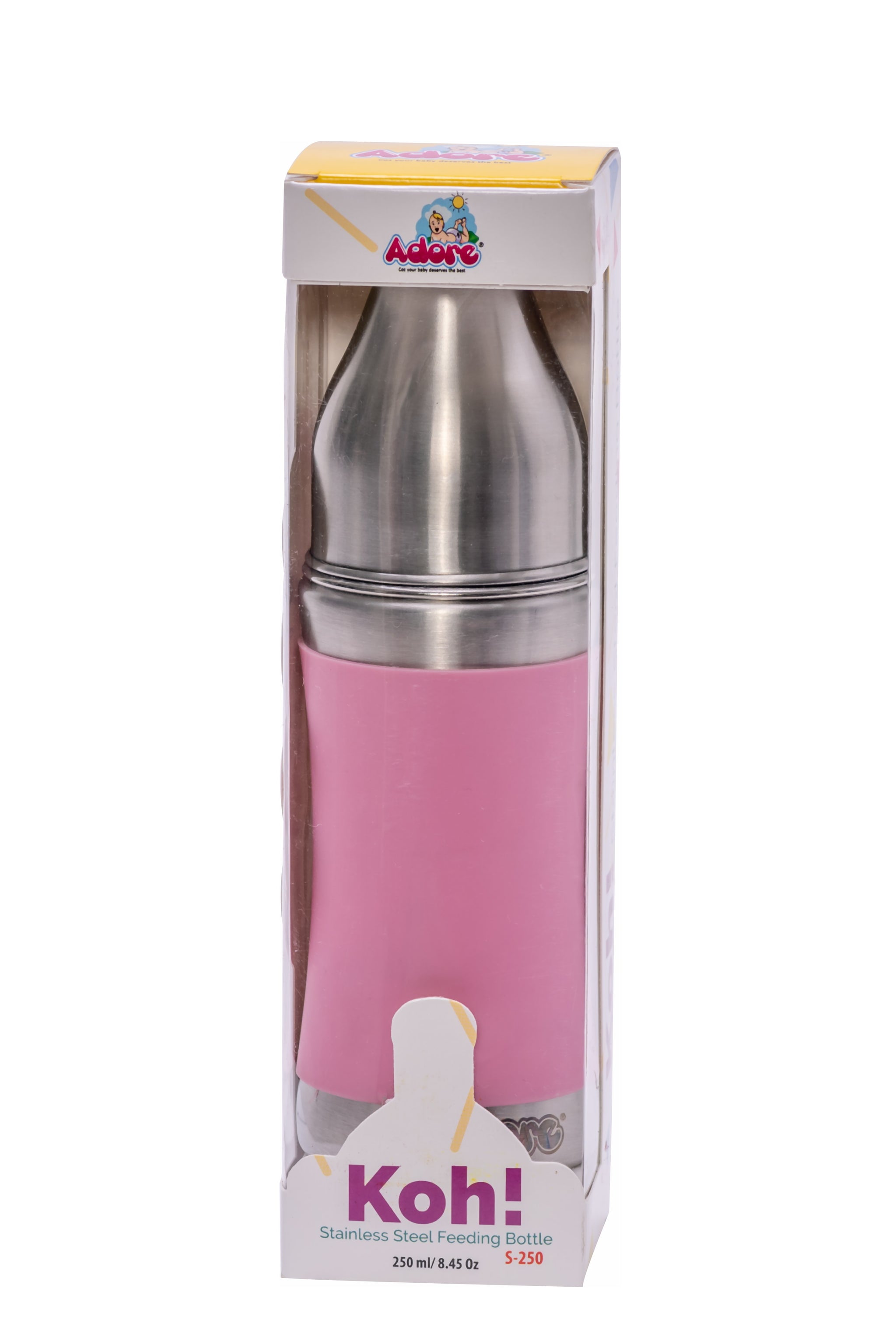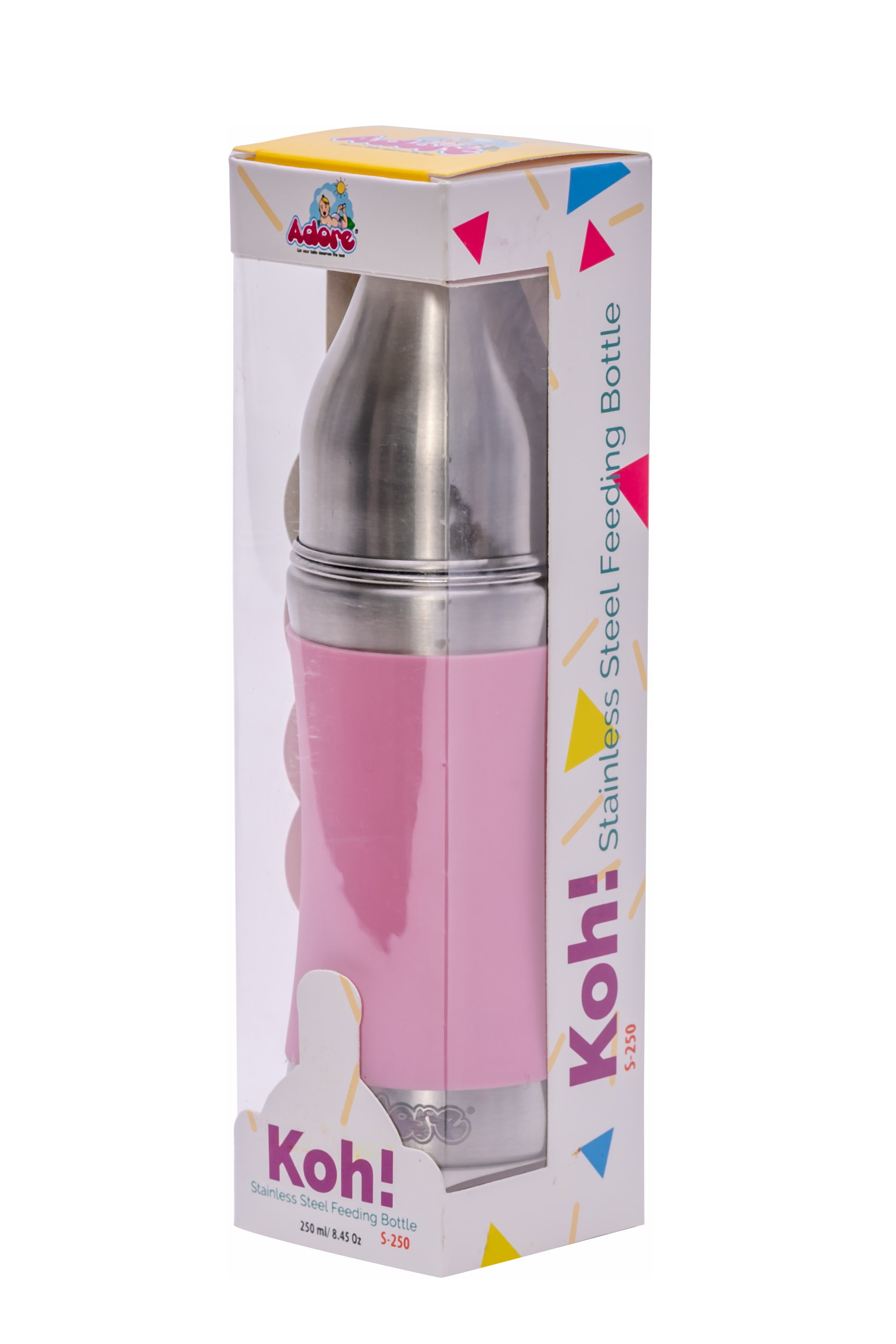 Adore Koh Stainless Steel Wide Neck Feeding Bottle with Silicon Sleeve- 250ml Pink