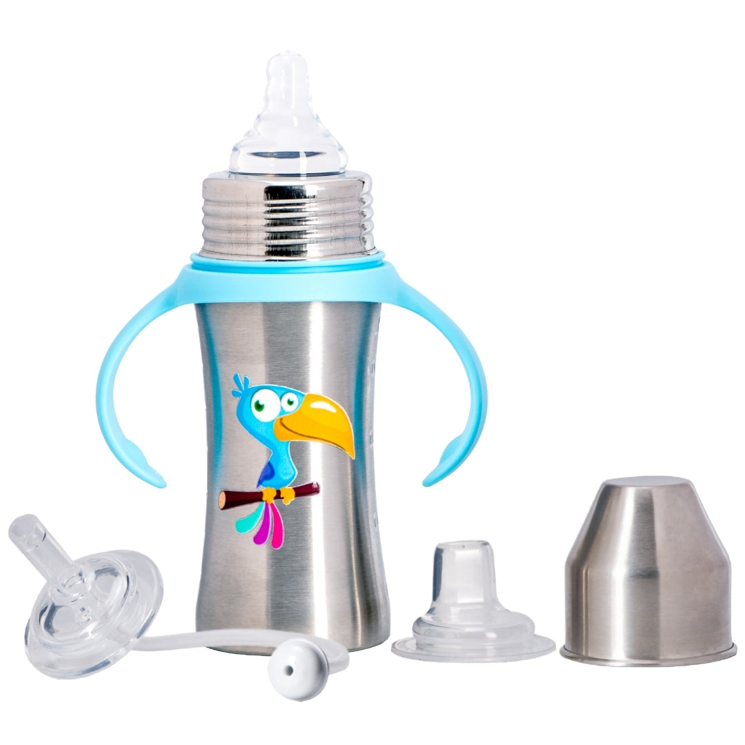 Adore Trion 3 in 1 Stainless Steel Sipper with Twin Handle 250ml- Blue Toucan