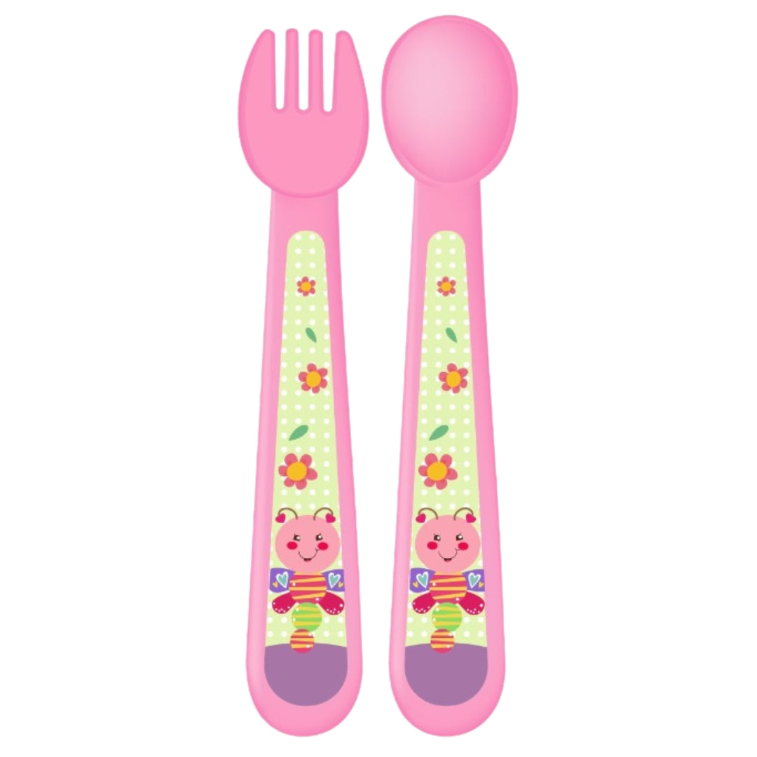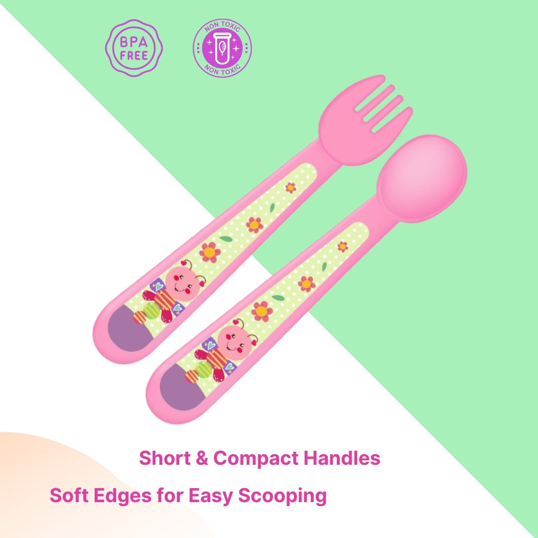 Adore Spoozy Baby Spoon & Fork Set- Pink