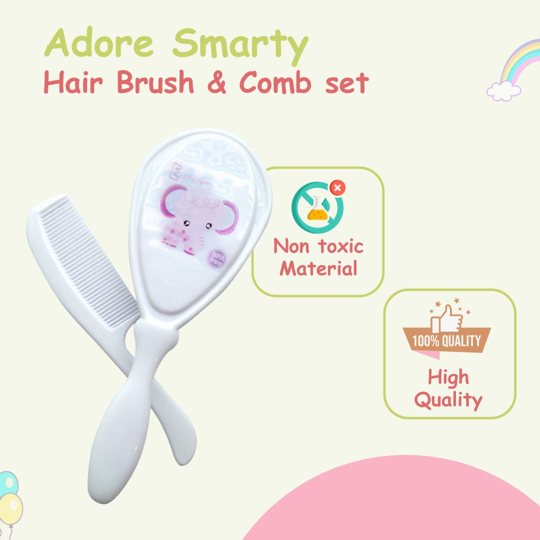 Adore presents Smarty hair brush and comb set for kids, The hair brush has premium quality soft nylon bristles. The set is made with Non-Toxic, BPA-free material.