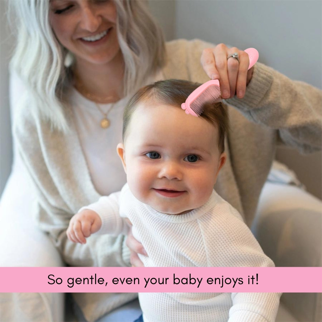 Rounded ends of comb teeth are gentle on the baby’s scalp