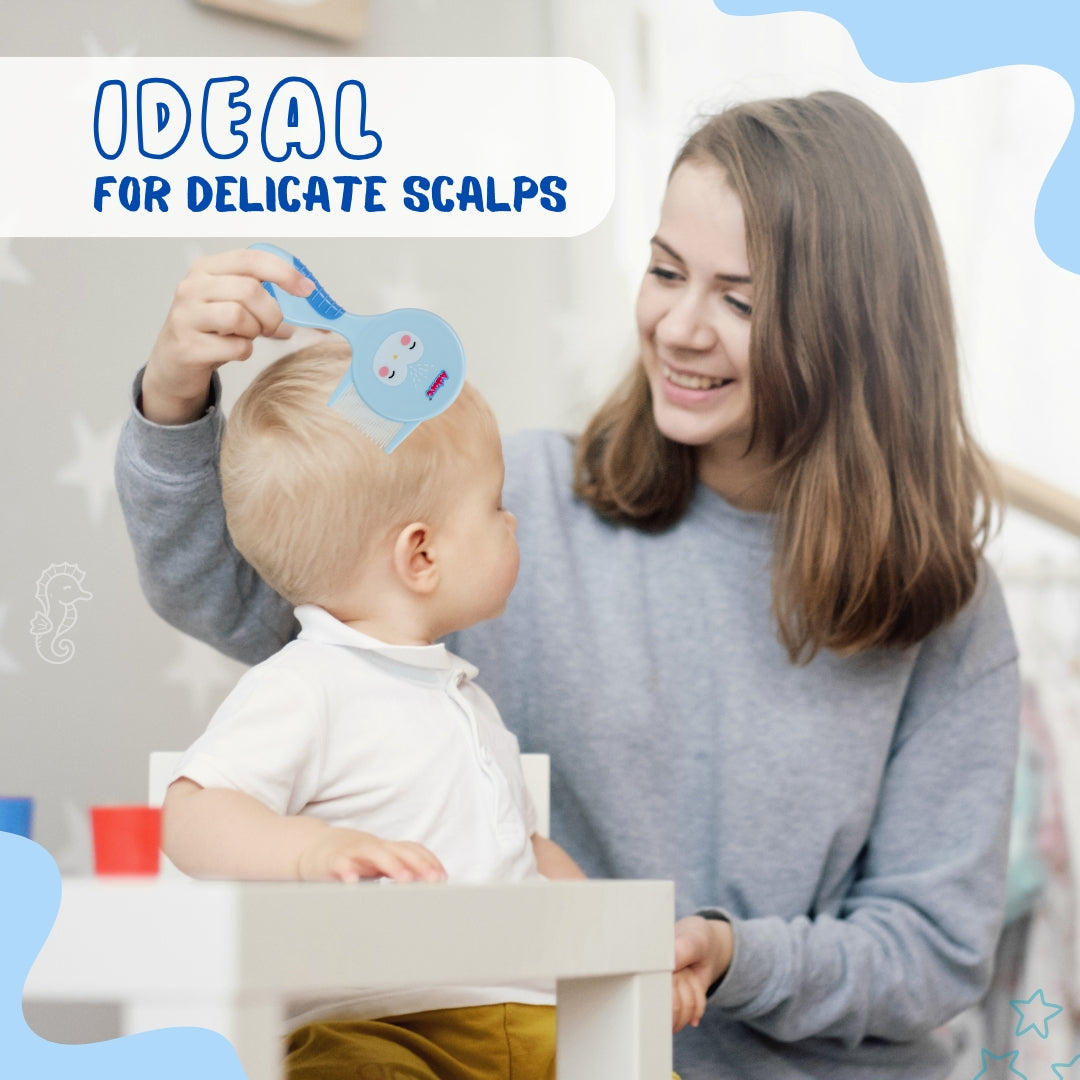 Adore Presents the all-new Twinz Brush & Comb set that has been meticulously crafted to the highest safety standards. This set makes it easy to groom your little one's hair. This brush features super soft nylon bristles that help in removing tangles and has round edges that make it easy to move around. This comb has an integrated smooth teeth section to comfortably glide through the baby's hair.