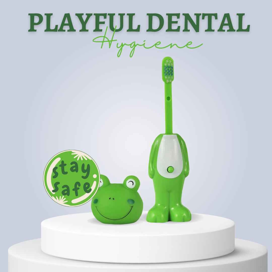 Adore Kids Pop Up Toothbrush with Safety Head Attractive Character - Green Frog