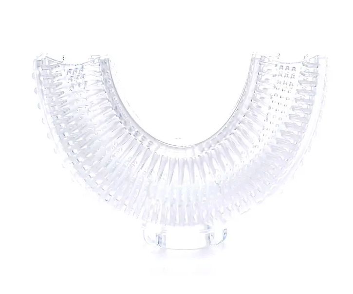 Adore Advanced Koala Kids U-shaped toothbrush is a 360° oral teeth cleaning brush that is made from food-grade silicone is BPA Free and is safe and gentle on kids' delicate teeth and gums. This toothbrush doesn't cause any discomfort or gag reflex, which is a fun way to encourage good oral care habits early on. The thumb grip handle provides comfort and control while brushing, which is easy for kids to grasp.