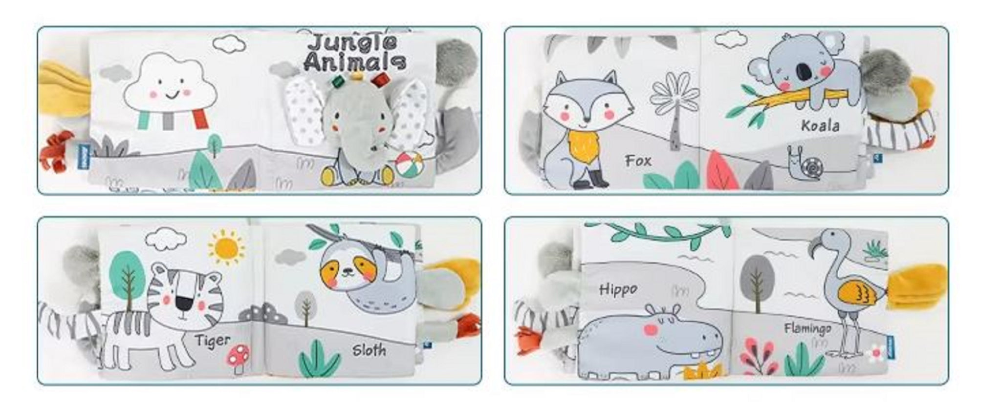 Adore Cloth Books are processed from safe polyester material which is soft, durable, non-tearable, and washable. These books are designed with attractive and interactive themes of the animal kingdom like Land animals, flying animals, Marine animals, Farm animals, and other interesting books. These books help to promote sensory development, brain development, grasping skills, color recognition, and screen-free play experience. These Baby books are skin-friendly, safe for health, have strong stitching, and are very durable. This washable material can keep the product clean, don't worry about baby biting, and not harm your baby at all.