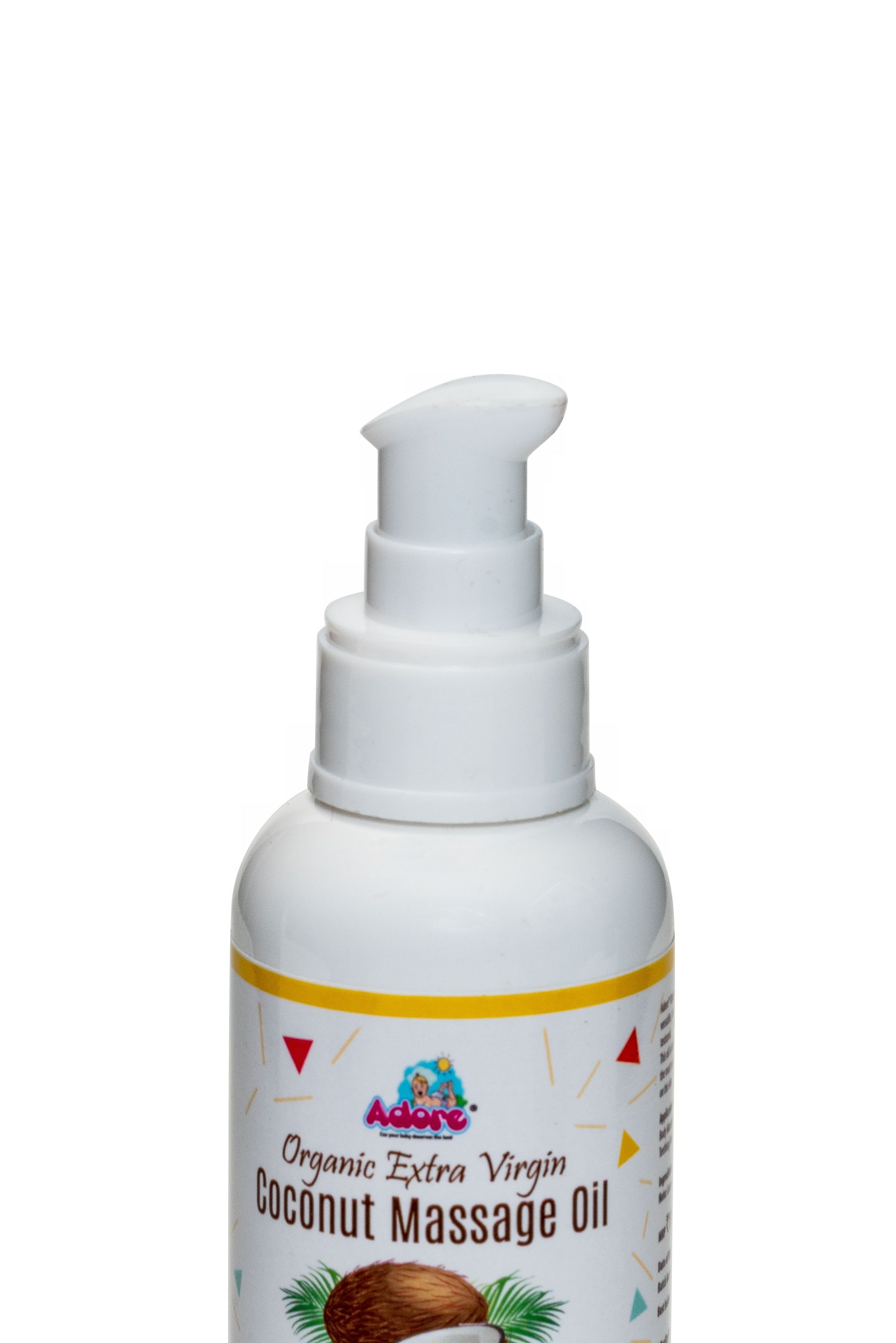 Adore Organic Extra Virgin Coconut oil is 100% Pure, Raw, Wet- Milled, Cold Pressed and Natural Fermented Oil. This Oil is highly versatile that can be used to condition the skin and hair. An ideal moisturiser for the body, it makes the skin smooth and even textured. Adore Organic Extra Virgin Coconut oil is loaded with health benefits, including its anti-inflammatory, antioxidant and antibacterial properties. It is undoubtedly the most nourishing oil you can use on your little one's skin. The molecular structure of the coconut oil allows for easy absorption on the skin. Features: Applications: - Body Massage for all ages. - Diaper Rash oil. - Hair Treatment. - Dry and Chapped Lips. - Insect Bites. Baby Acne. - Chest Rub for Cold. - Teething Pain. - Eczema. - For Bumps, Burns, Cuts and Cradle Cap.Note: Coconut oil solidifies at cold temperatures, place the bottle in warm water for 5-10 mins for liquidification.