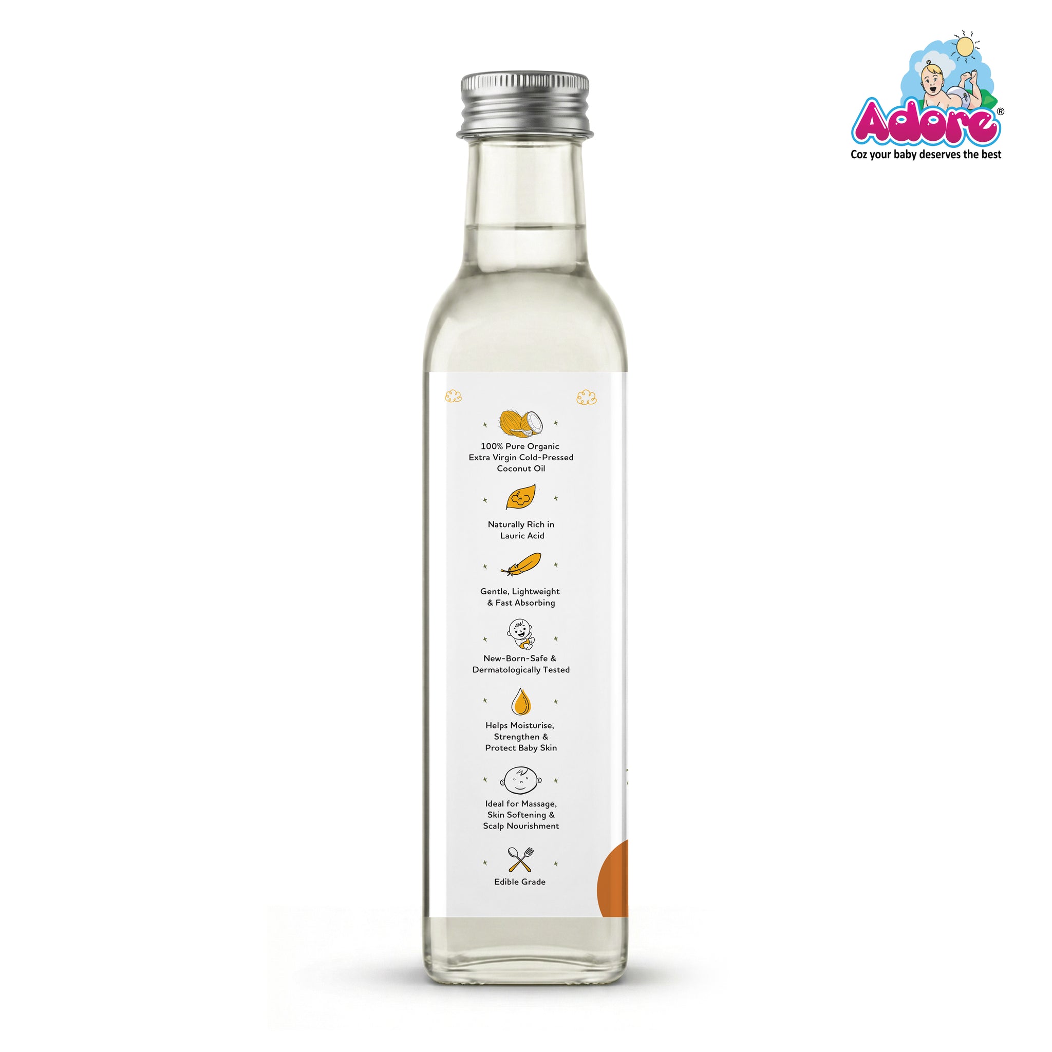 Adore Pure & Premium Organic Extra Virgin Coconut Oil -Cold Pressed- Glass Bottle- 250ml
