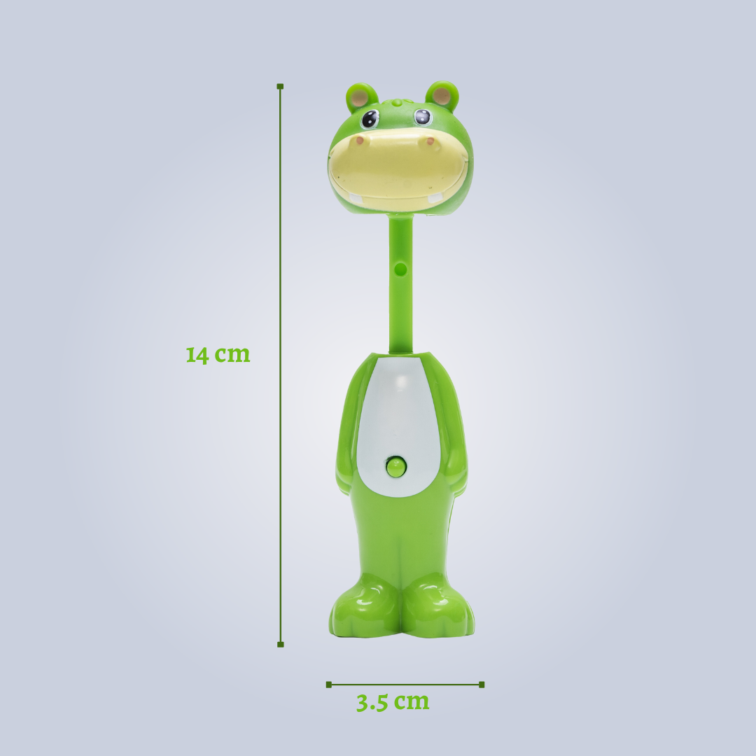Adore Kids Pop Up Toothbrush with Safety Head Attractive Character - Green Hippo