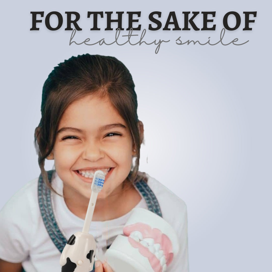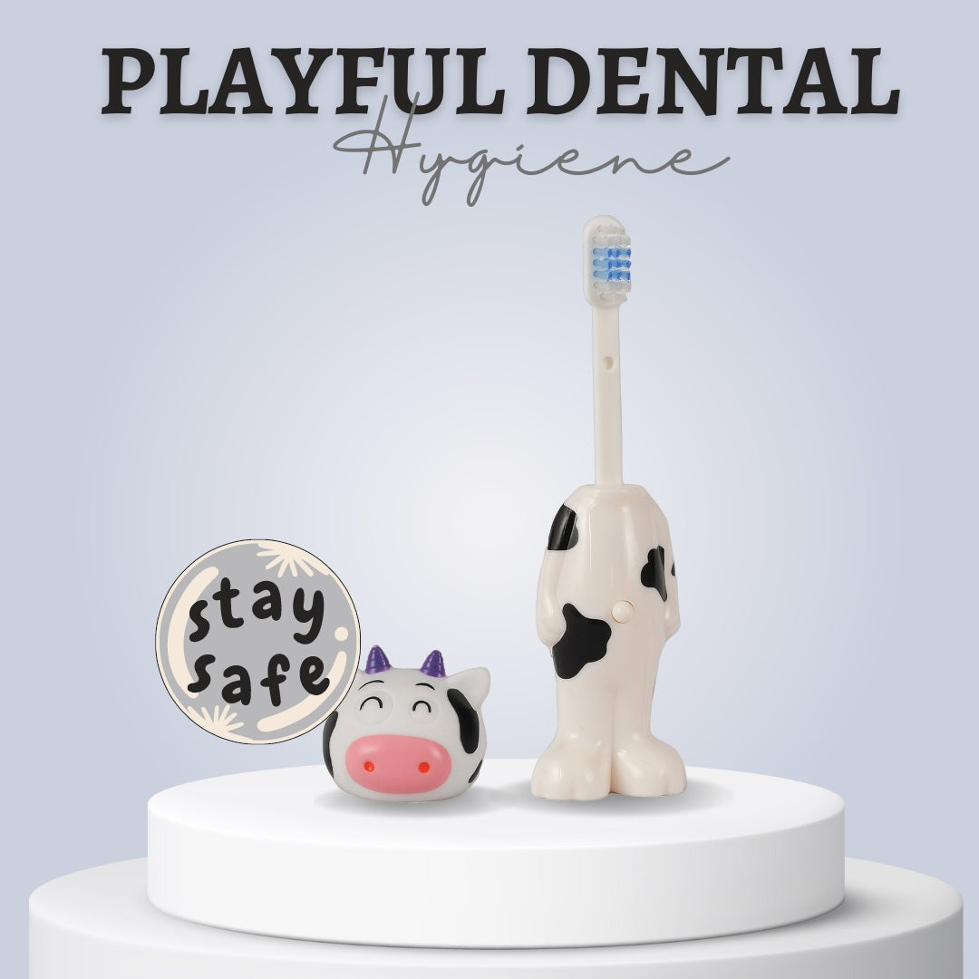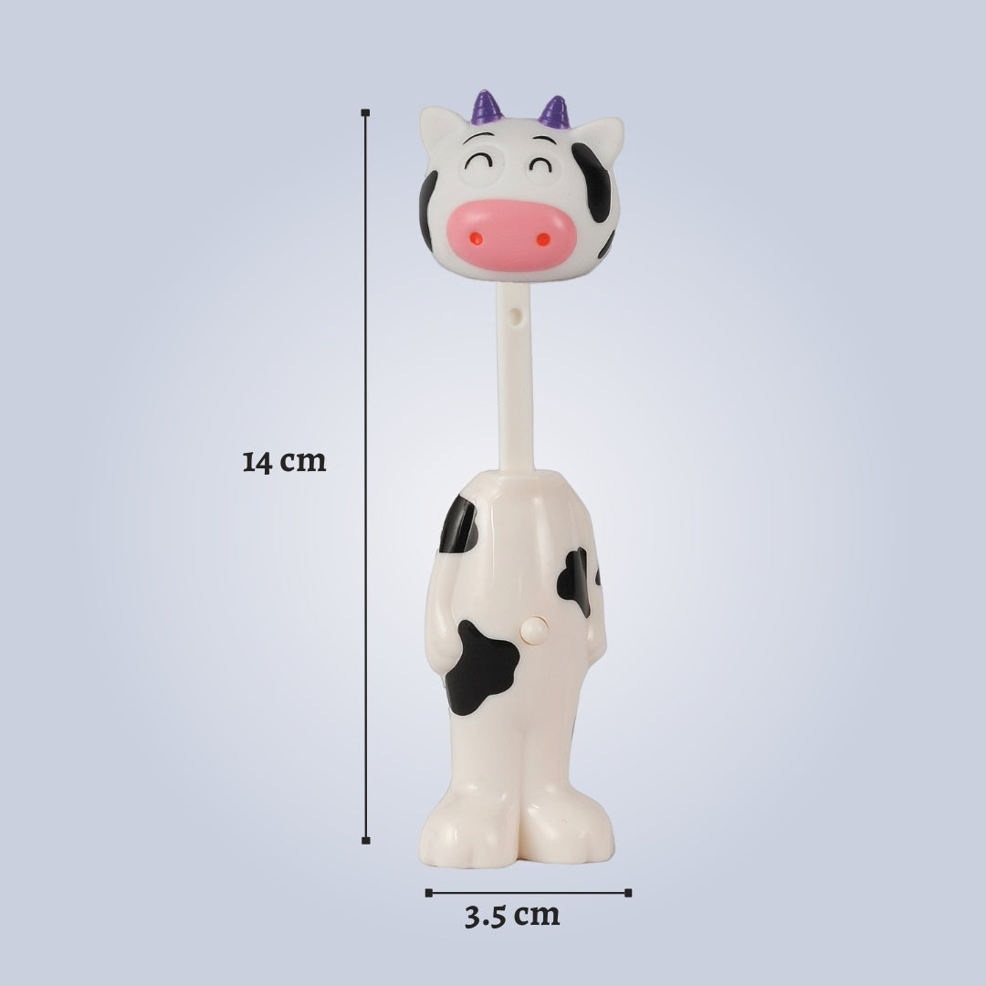 Adore Kids Pop Up Toothbrush with Safety Head Attractive Character - White Cow