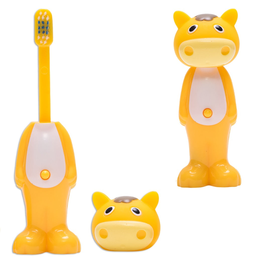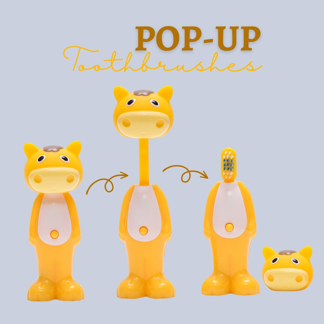 Adore Kids Pop Up Toothbrush with Safety Head Attractive Character - Yellow Cow