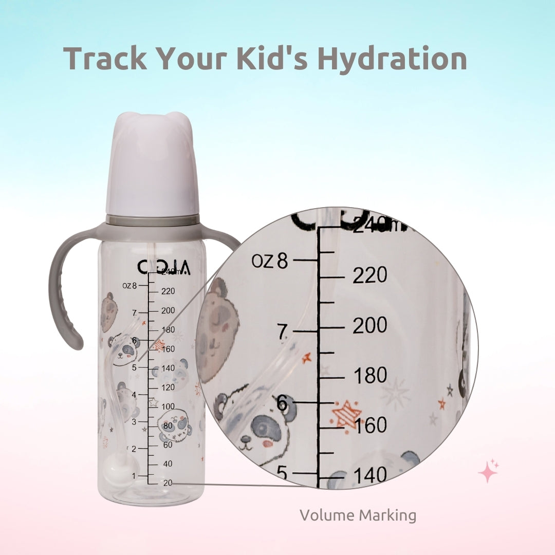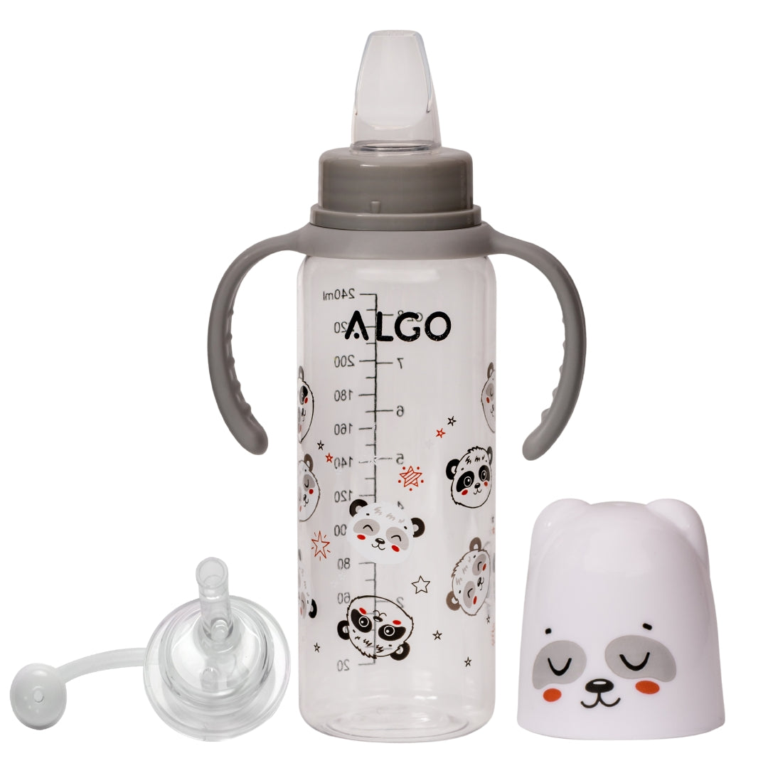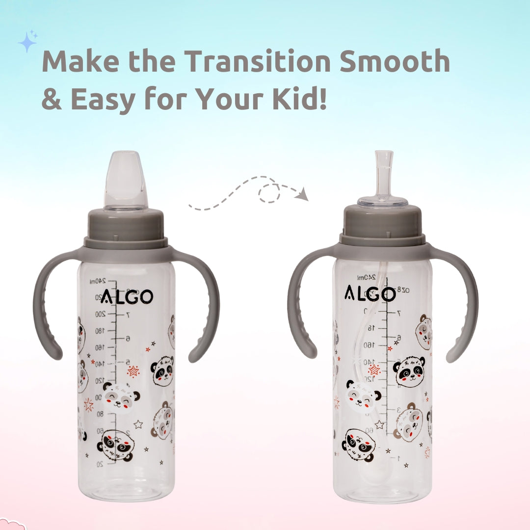 Adore ALGO Snr. 2 in 1 Baby Silicon Spout & Straw Sipper with Gravity Ball & Twin Handle - 250ml -Grey