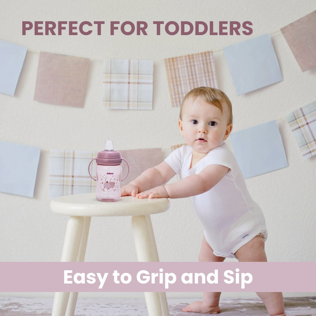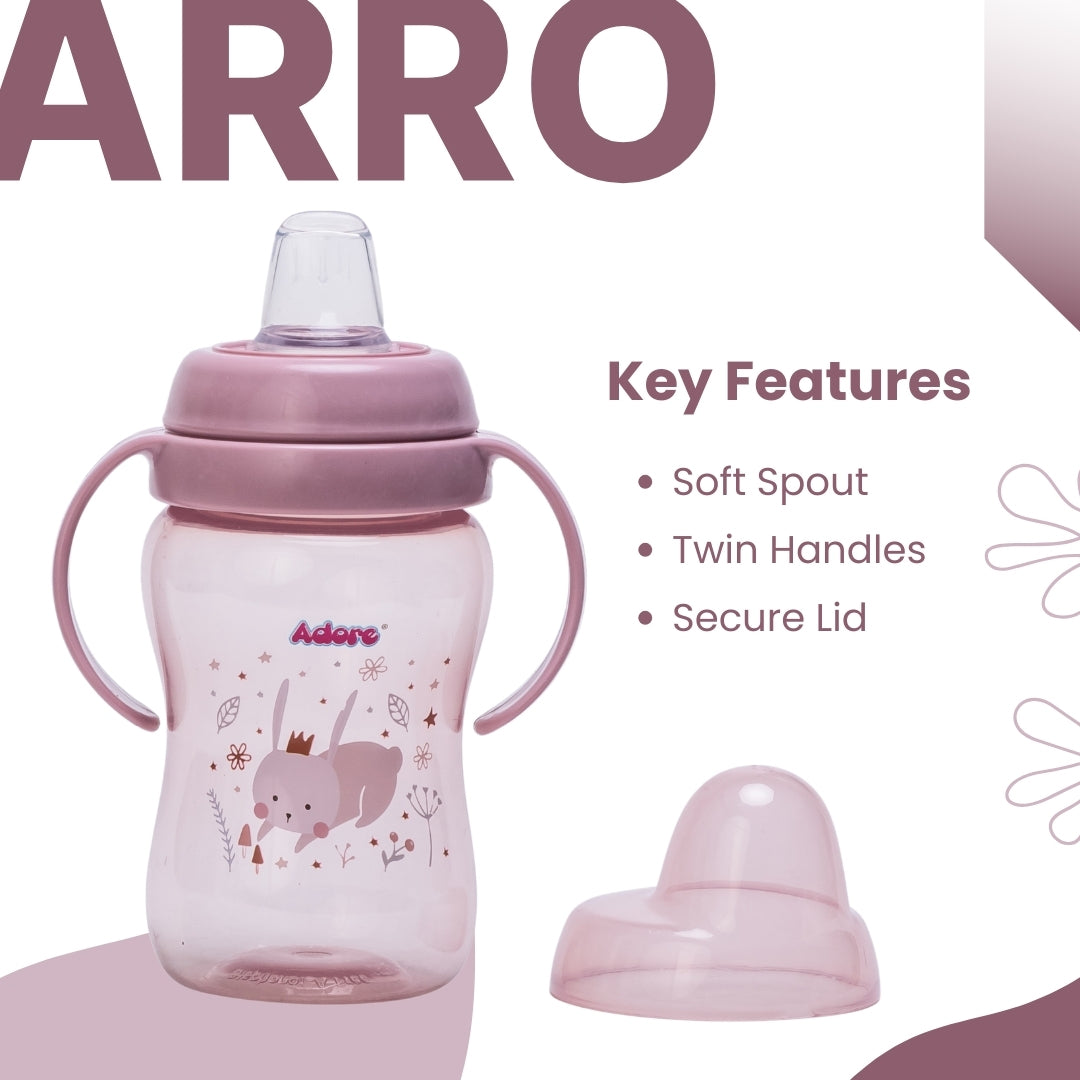 Adore ARRO Soft Spout Sipper with Dust Free Cap and Twin Handle 270ml - Pink
