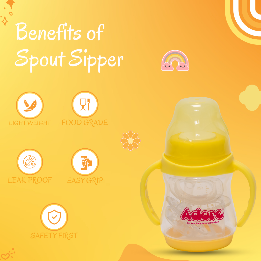 Adore Baby Basics Soft Silicone Spout Sipper with Twin Handle - 150ml Yellow