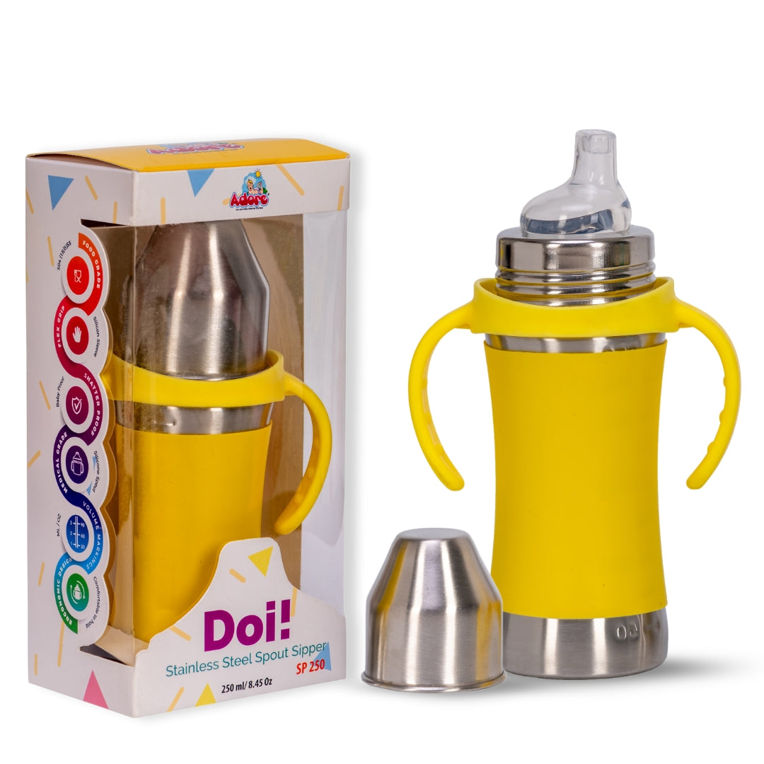 Adore Doi! The Wideneck Spout Stainless Steel Sipper with Sleeve-250ml Yellow