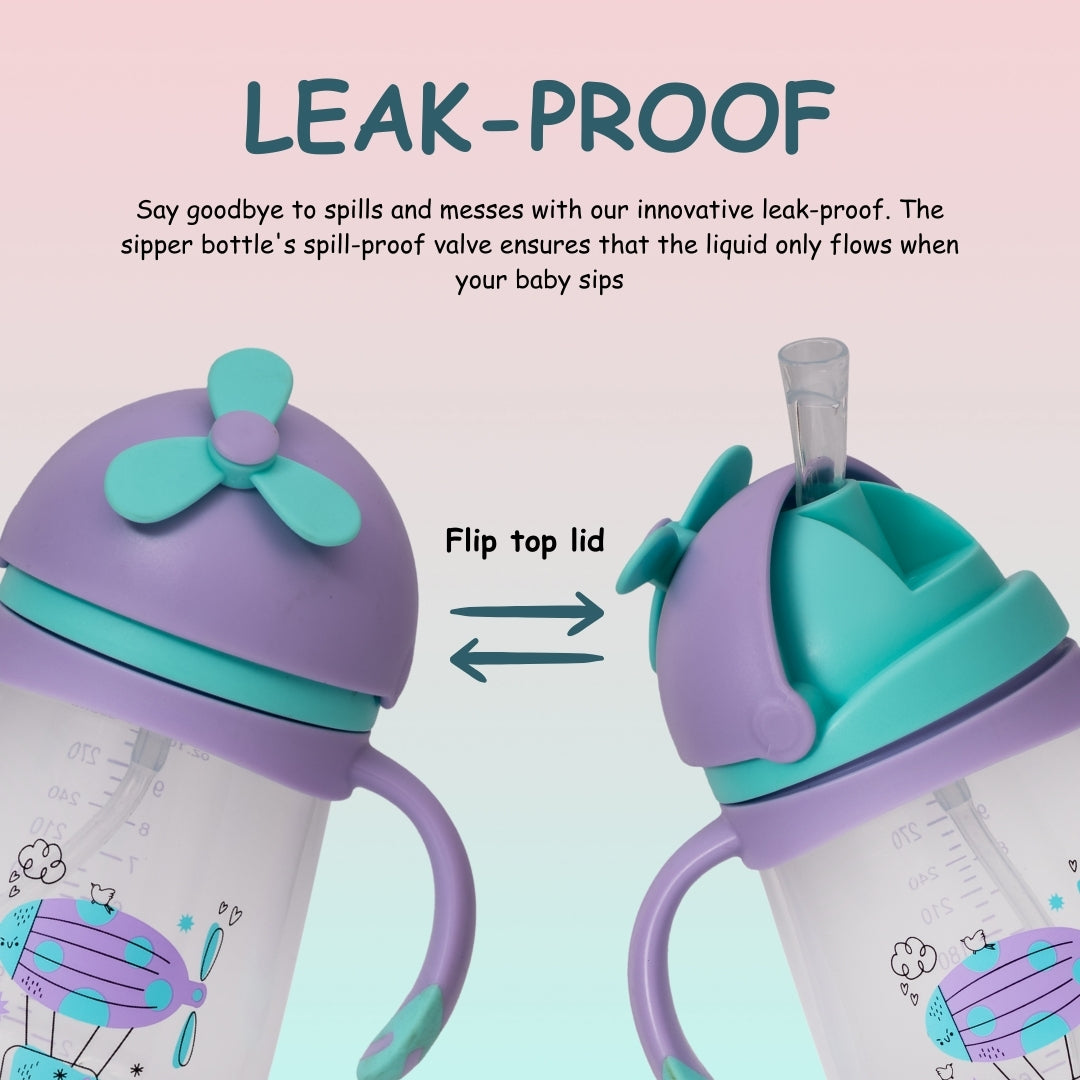 Adore Flora! Baby Straw Sipper with Gravity Ball & Twin Handle-300ml- Purple