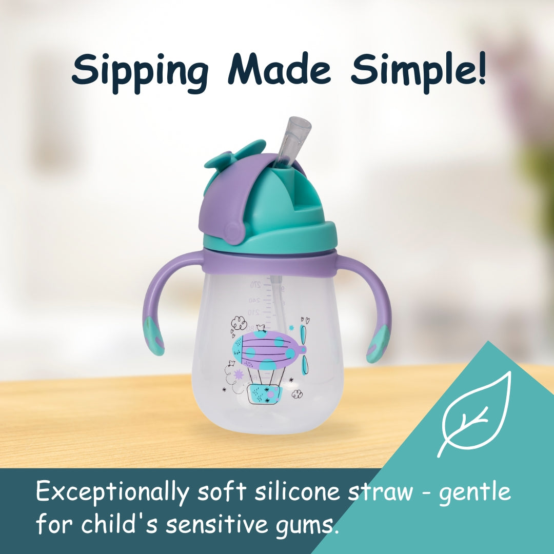 Adore Flora! Baby Soft Straw Sipper with Gravity Ball & Twin Handle is processed from food-grade material using state-of-the-art machinery. This sipper has been designed ergonomically. This features food-grade silicon Straw that is safe for babies and is Sterilisable. The Twin Handle makes it easy for babies to transform from Spout Sipper bottles to Straw Sipper. This is spillproof, Lightweight, Easy to Handle, and Dishwasher Safe.