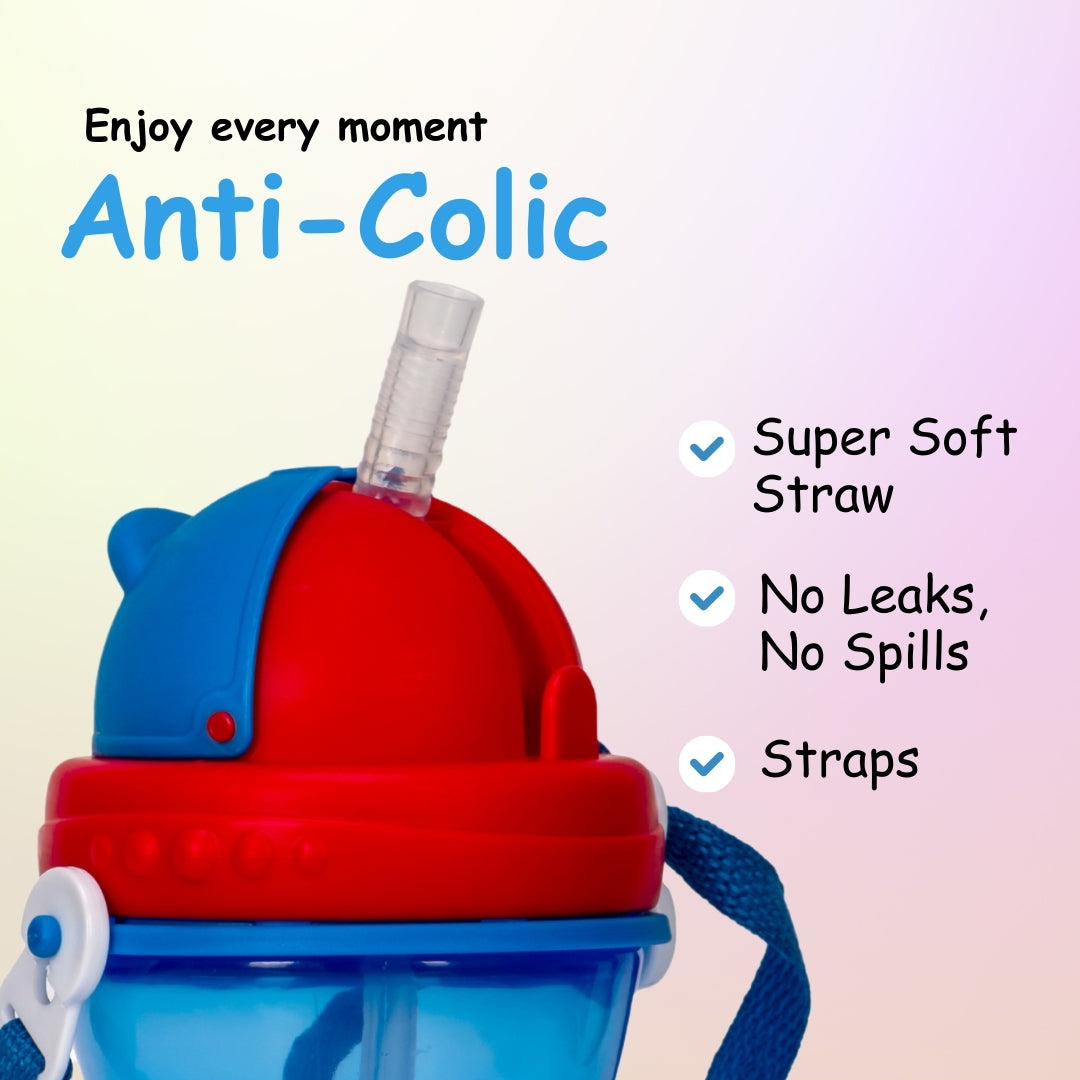Adore Idaho Straw Sipper with Retractable Hood & Adjustable Shoulder Strap 300 ml - Blue