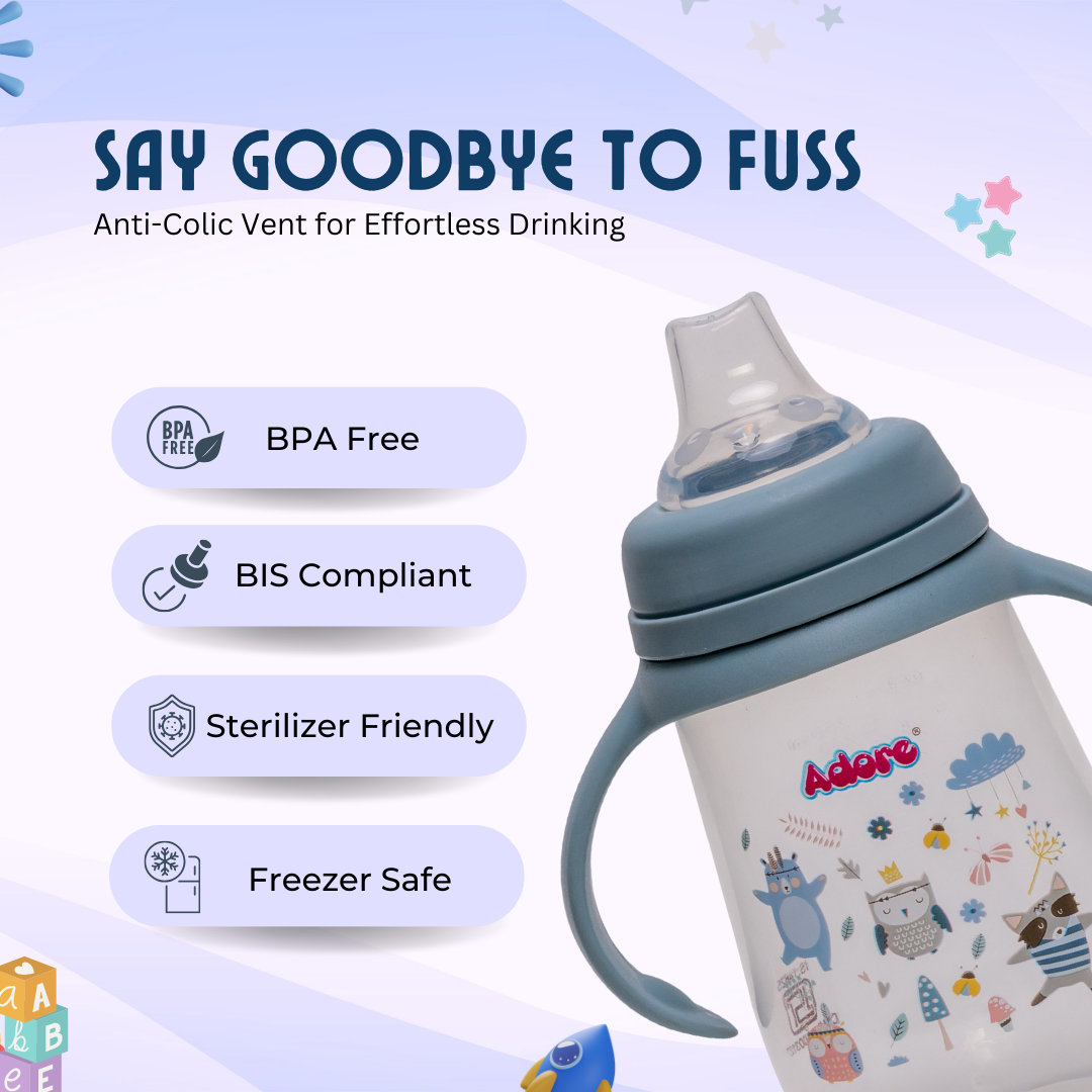 Adore Ireland Wide Neck Soft Spout sipper with Twin Handle-250ml- Blue
