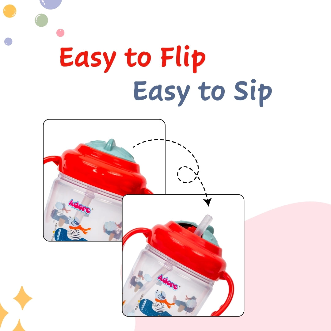 Adore Itzy Bitzy Straw Sipper with Twist & Sip Head with Twin Handle - Red