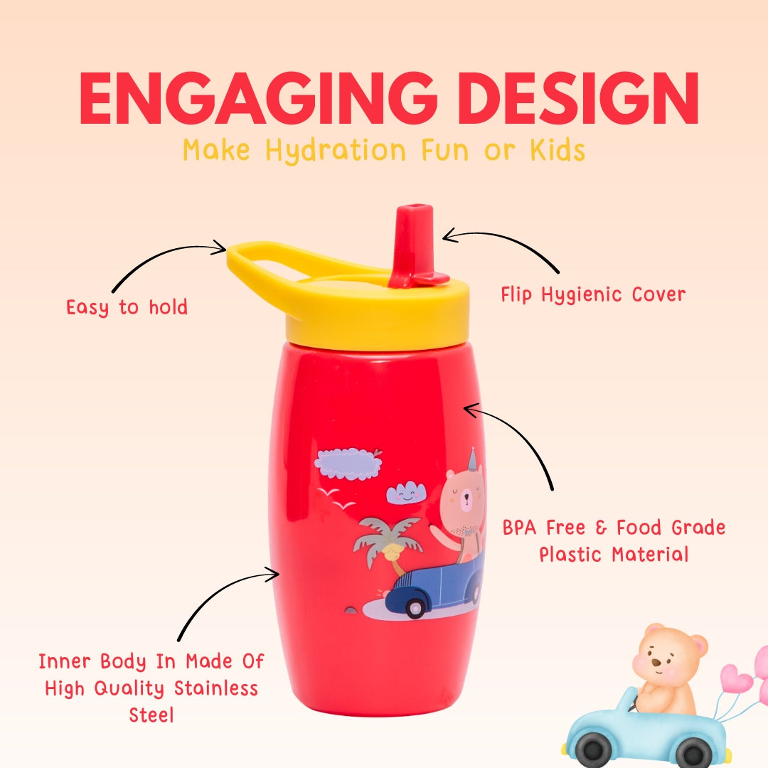Adore Kiddo Flip to Sip Sports Sipper with Handle- 420ml -Red